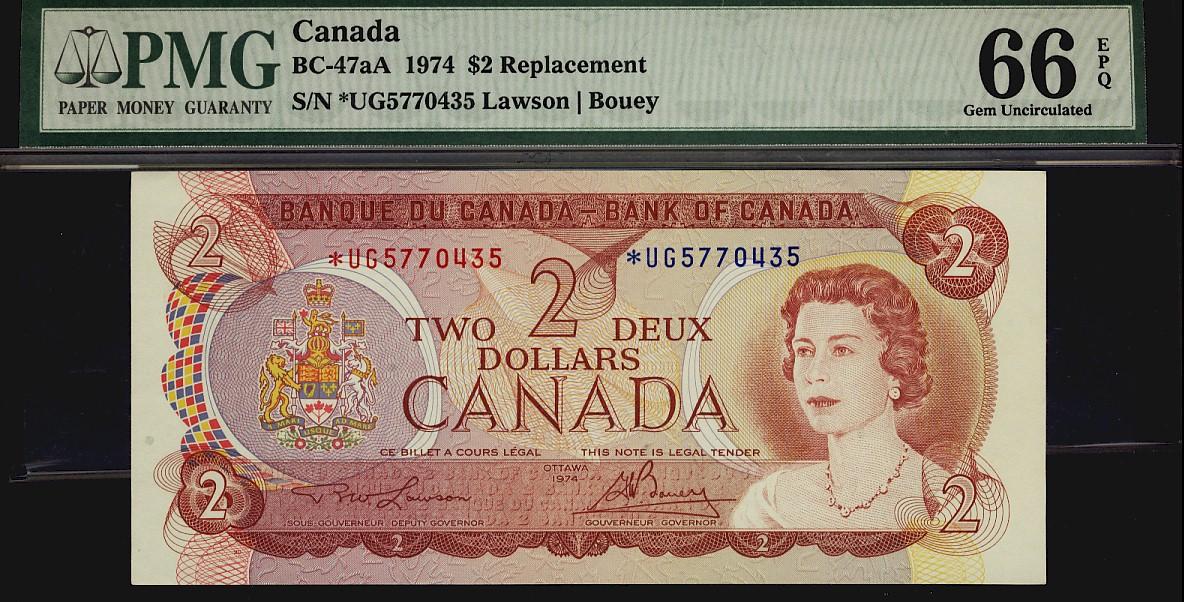 1974 $2 BC-47aA #*UG5770435 PMG Gem UNC66 EPQ.