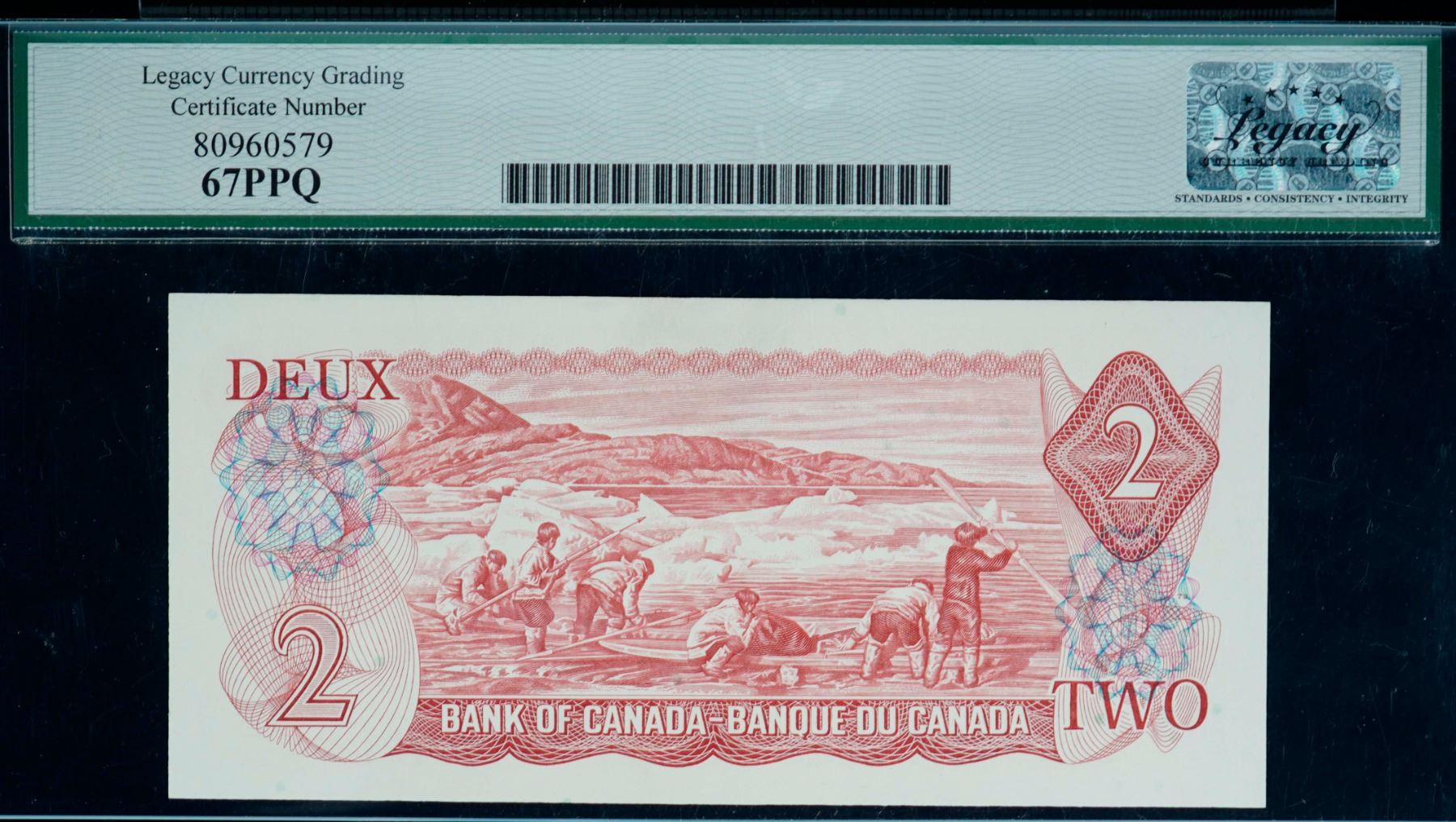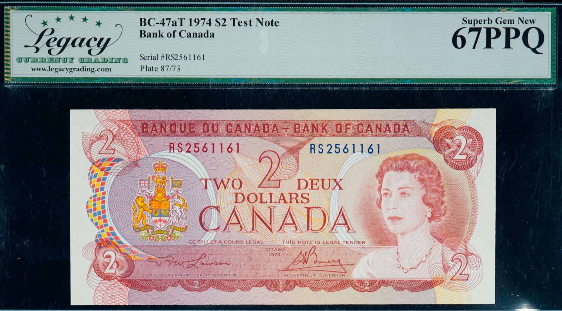 1974 $2 BC-47aT #RS2561161, Legacy Superb Gem Uncirculated-67PPQ. This is a pristine issue with great eye appeal, good margins and superb embossing.
