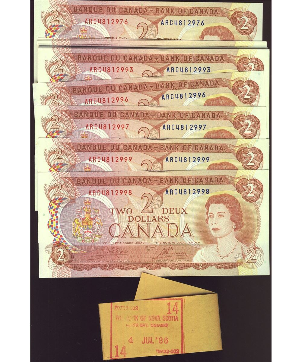 1974 $2 BC-47b #ARC4812976 to4812998, lot of 23 consecutive notes, all unc.