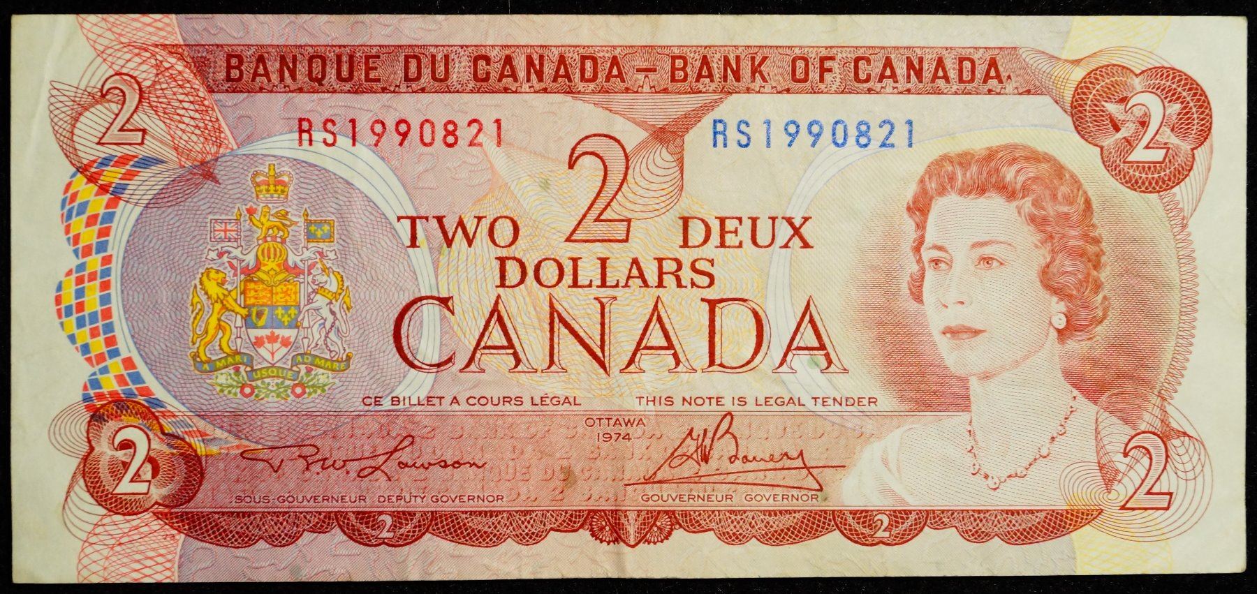 1974 $2 Dollar BC-47aT - Bank of Canada 'RS' prefix