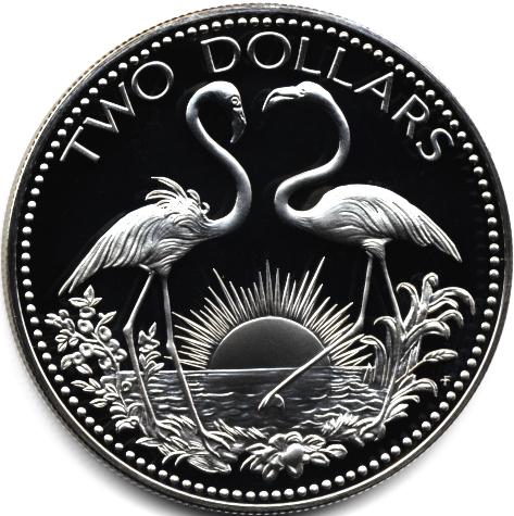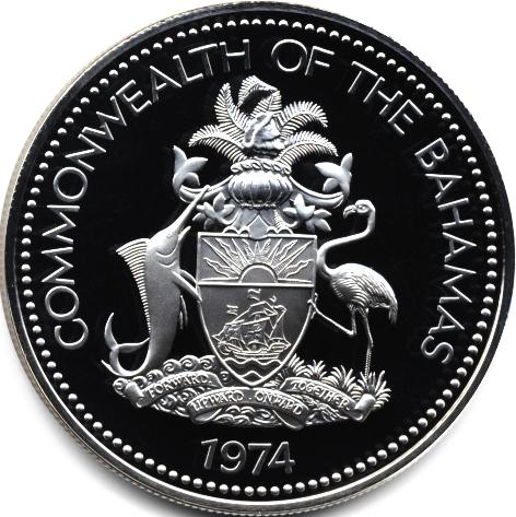 1974 $2 SILVER PROOF DCAM BAHAMAS-GEM