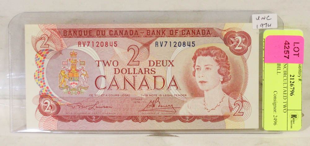 1974 $2 UNCIRCULTAED TWO DOLLAR BILL