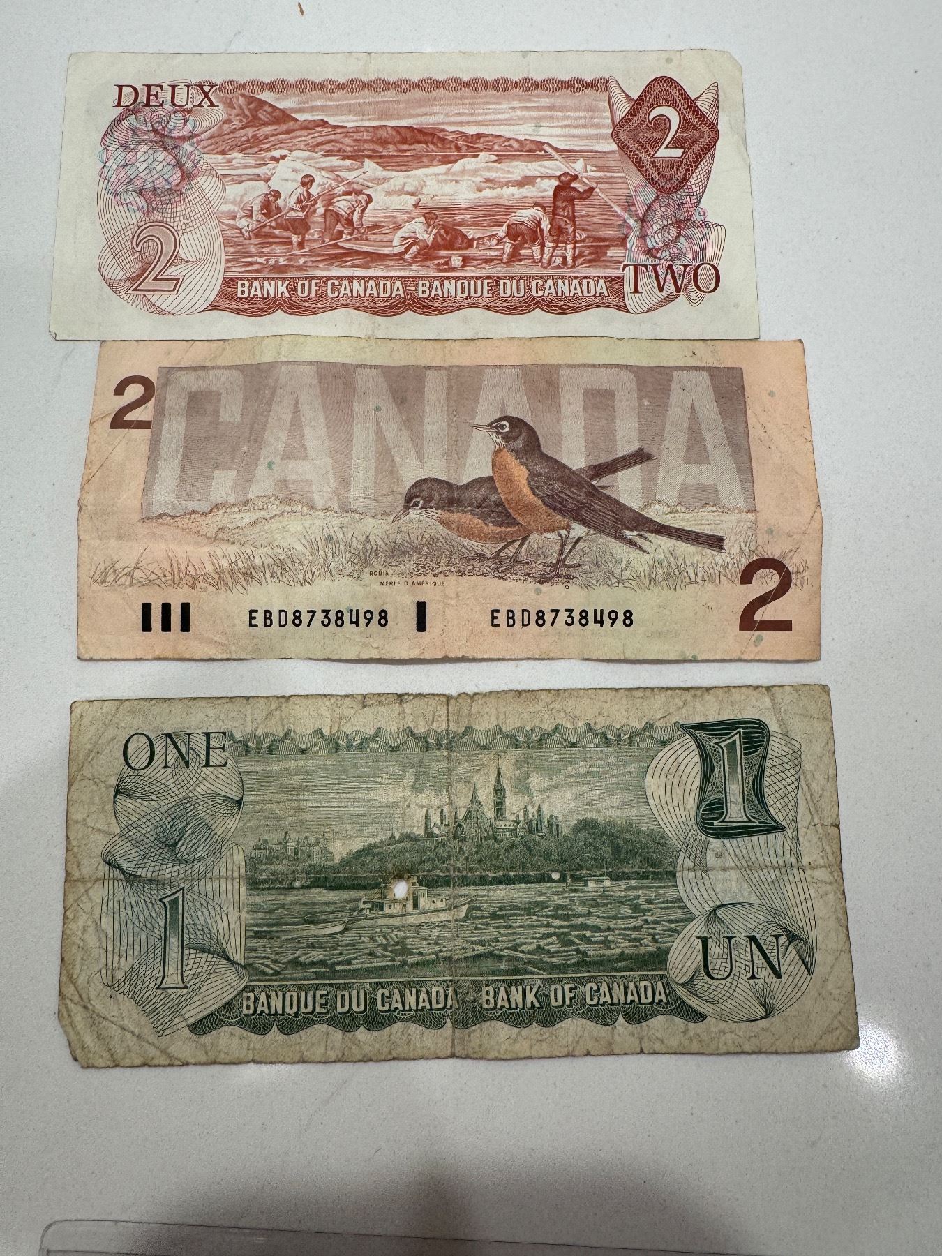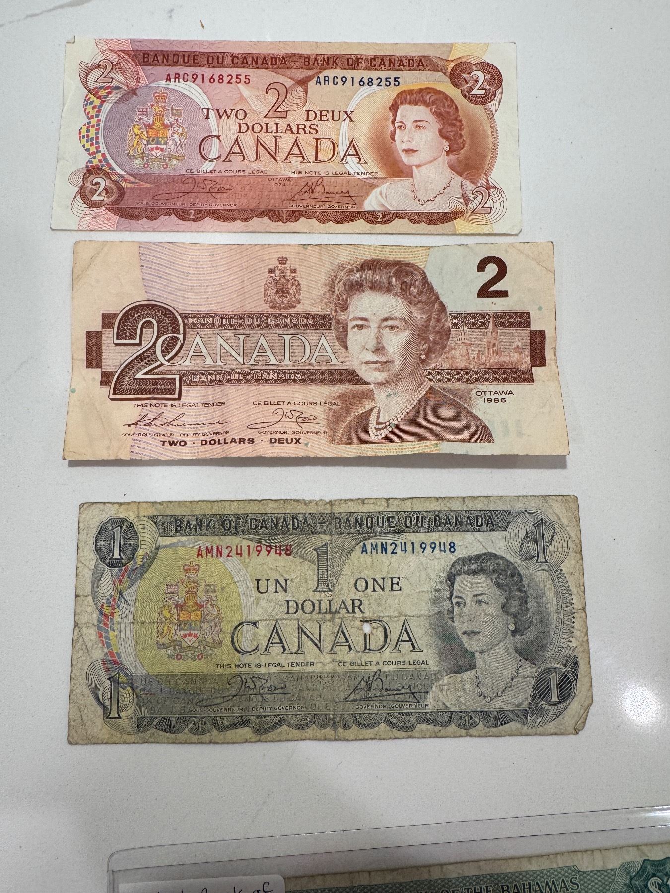 1974 $2 bill 1986 $2 bill 1973 $1 bill Canadian