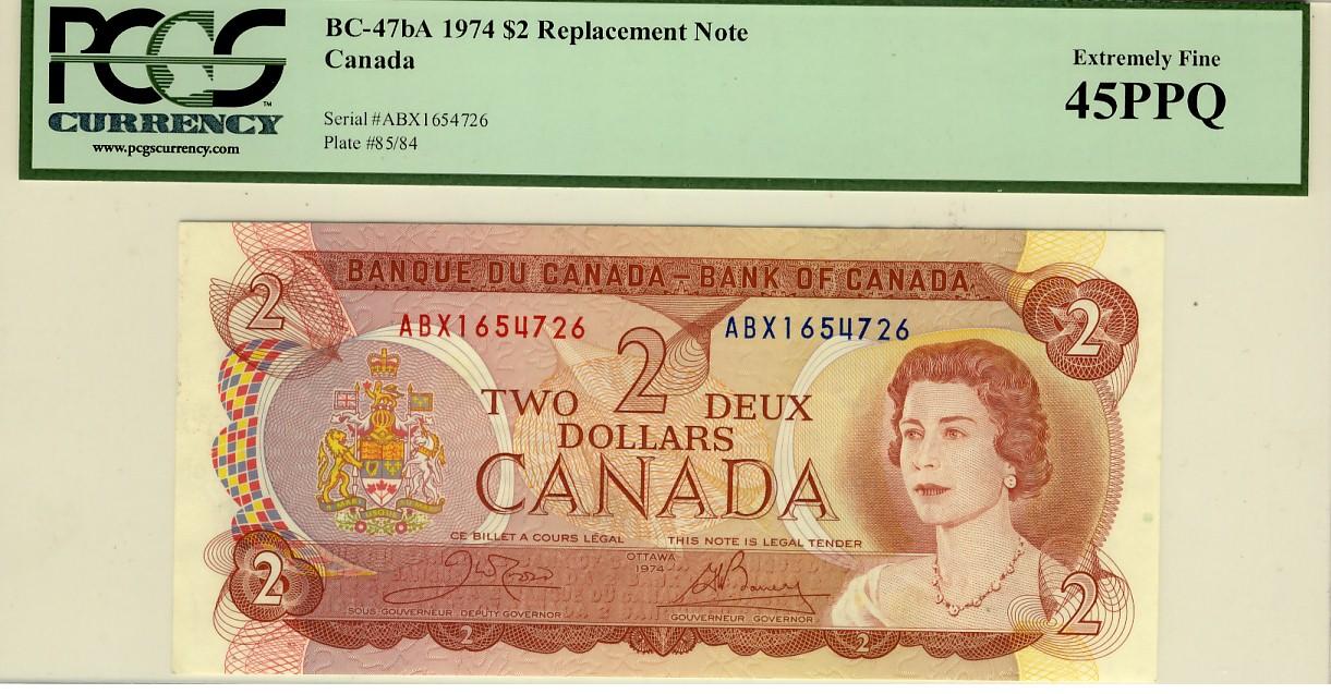 1974 $2 repl BC47bA ABX 1654726 PCGS 45 PPQ