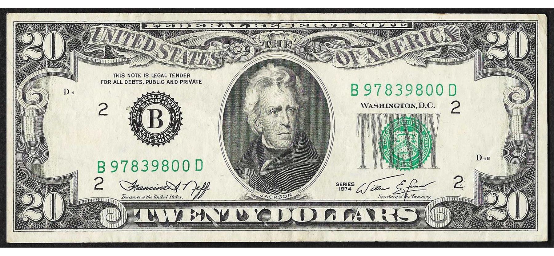 One 1974 $20 Federal Reserve Note Full Offset ERROR.
