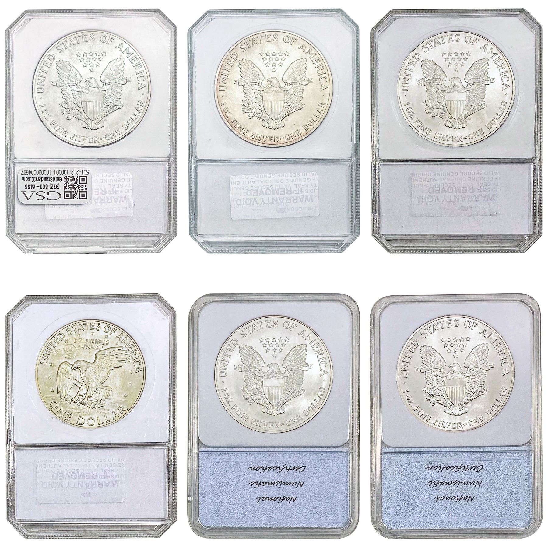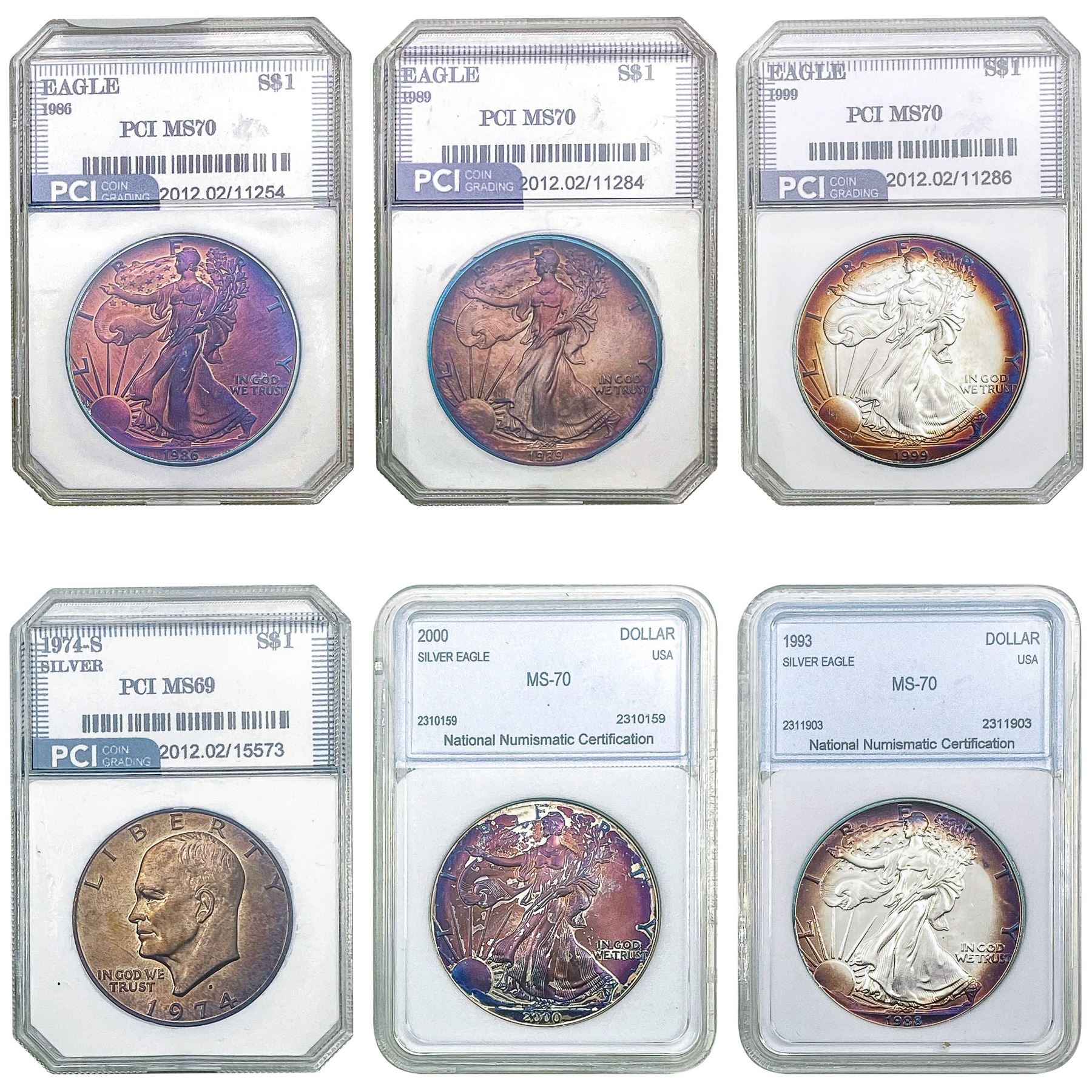 1974-2000 GEM BU American Silver Eagle and Ike Dollar Lot [6 Coins] PCI MS69/70