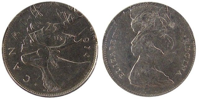 1974 25¢ Mint Error PCGS MS62. Double Struck, with 2nd Strike 35% O/C.