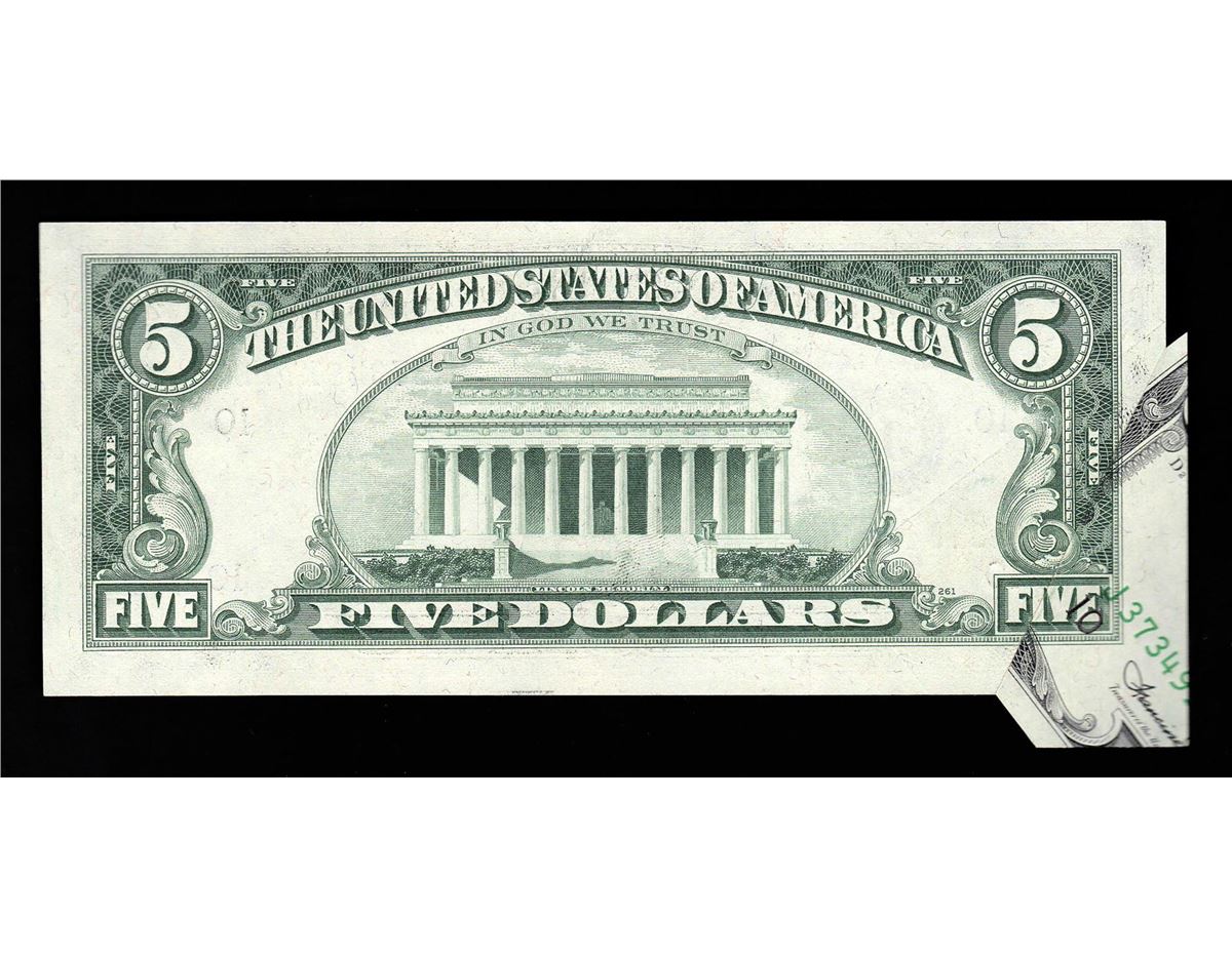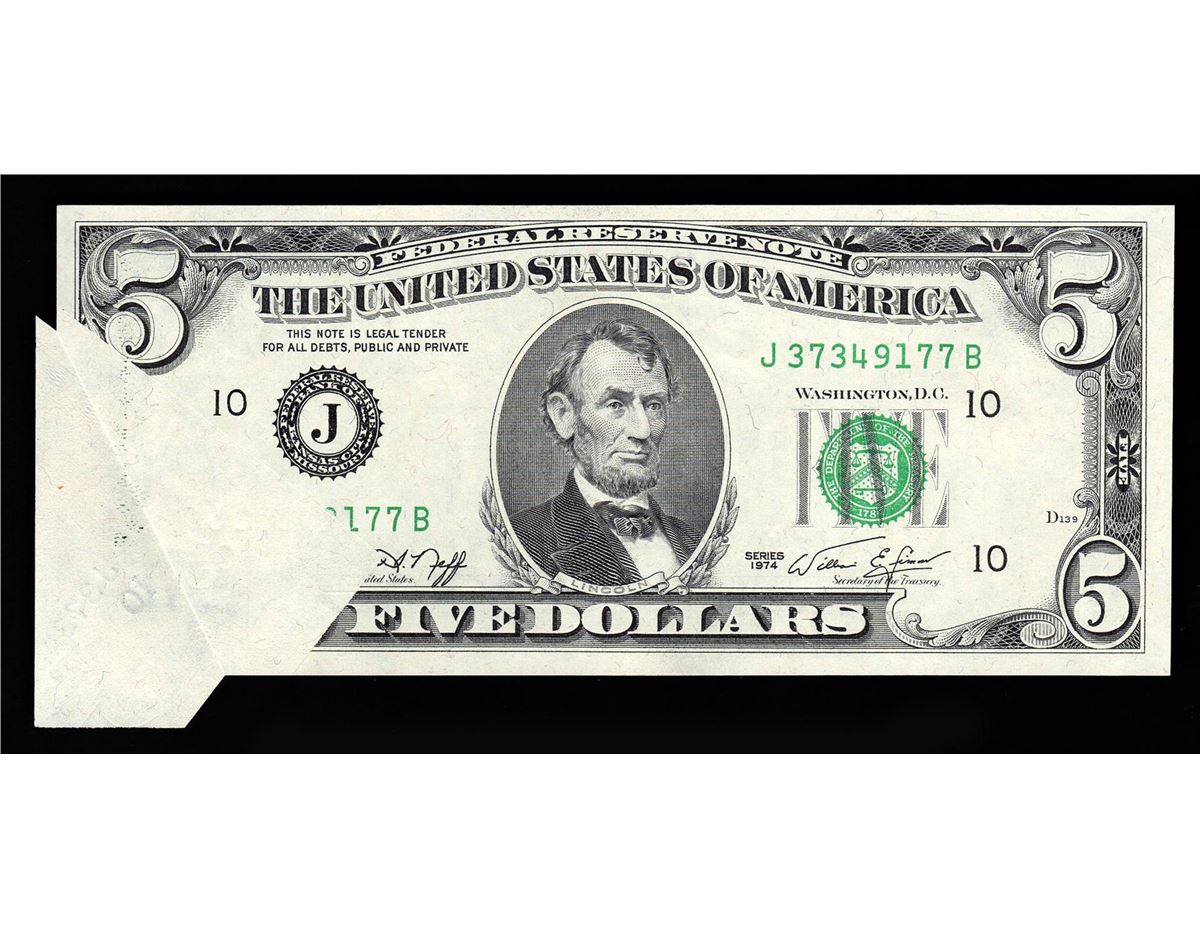 One 1974 $5 Federal Reserve Note ERROR Large Fold Over.