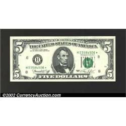 1974 $5 Federal Reserve Note, Fr-1973-H*, Gem CU. An extremely scarce star note that was one of just