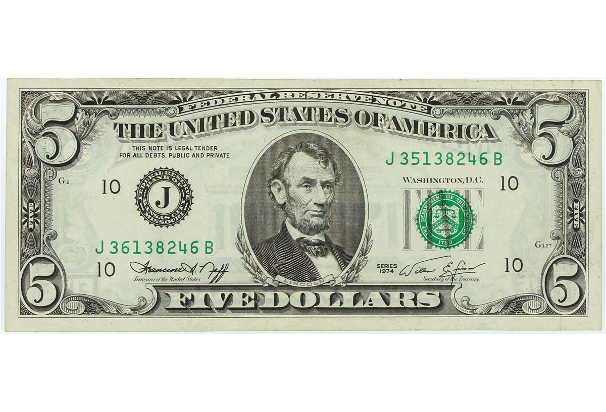 One 1974 $5 Mismatched S/N Error Federal Reserve Note.