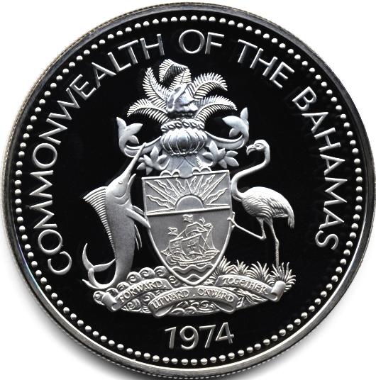 1974 $5 SILVER PROOF BAHAMAS-CHOICE DCAM-OVER 1oz of SILVER