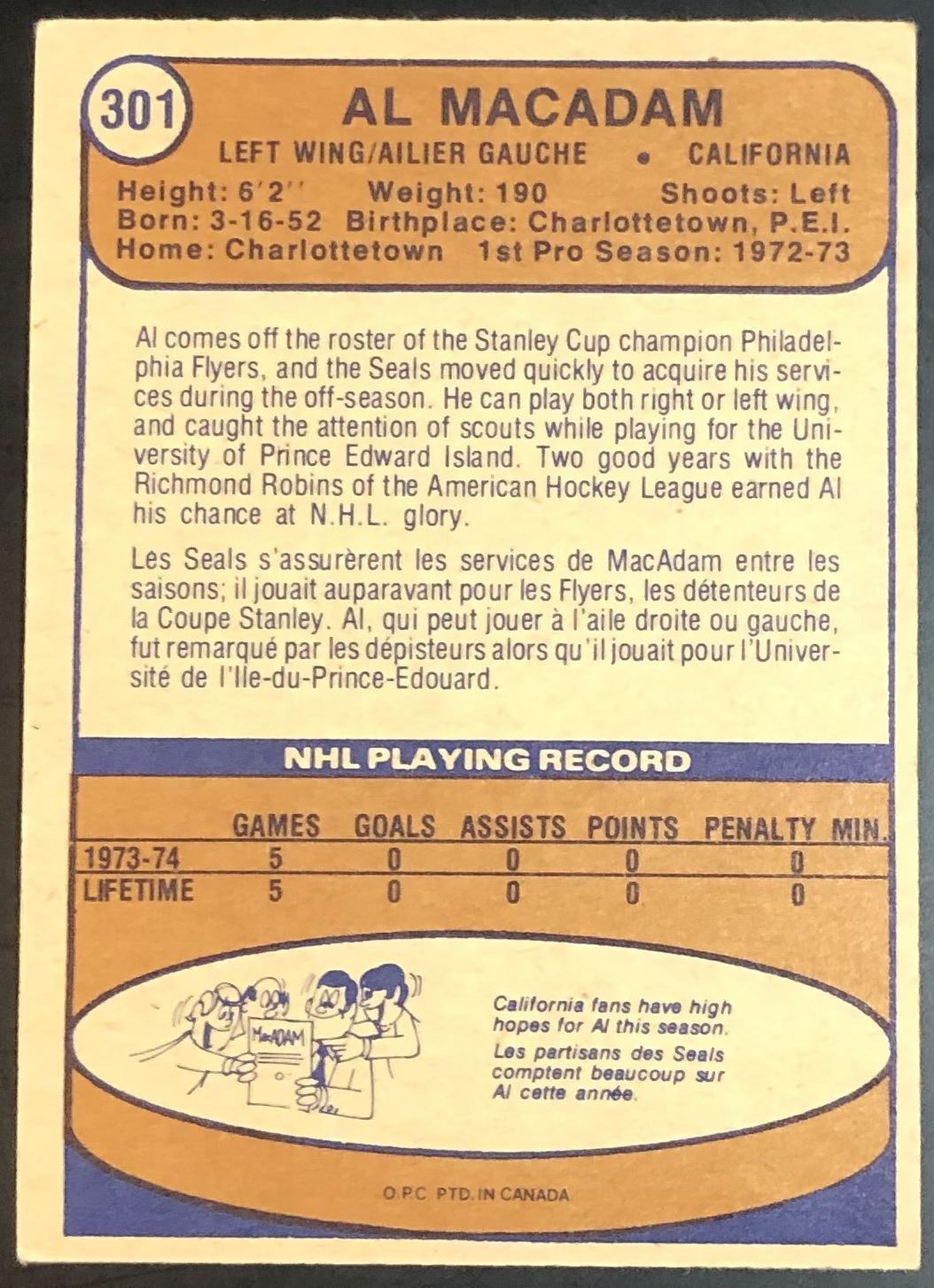 Card #301 NHL, hockey, OPC, vintage, rookie