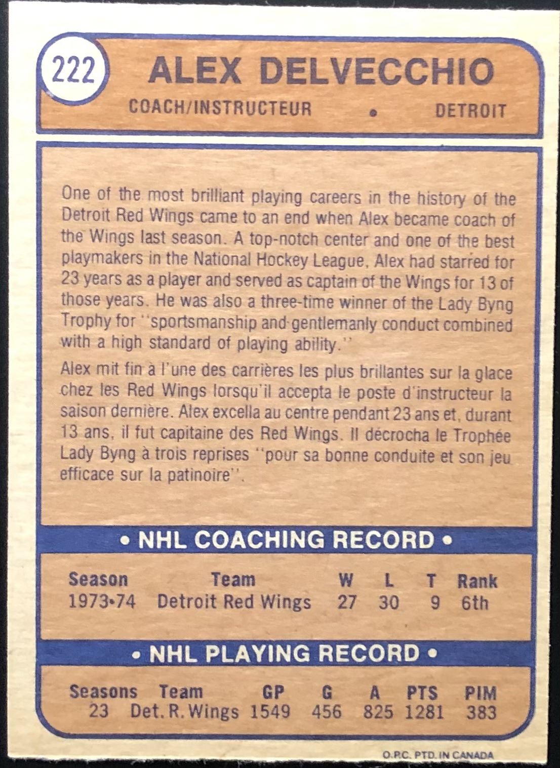 Card #222 NHL, hockey, vintage, OPC, hall of fame