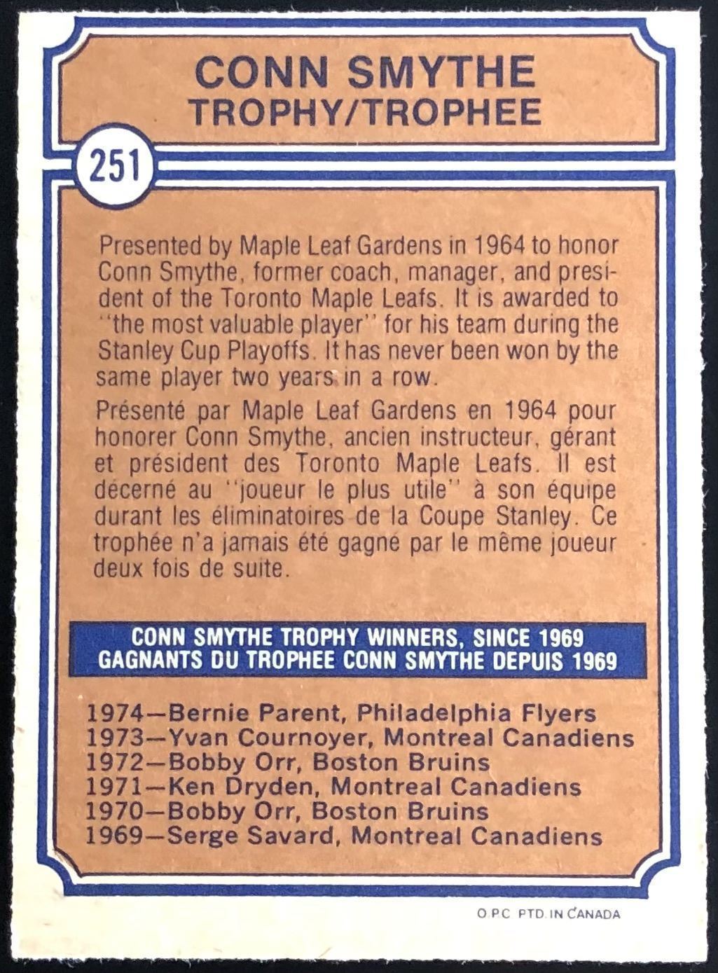 Card #251 NHL, hockey, vintage, OPC, hall of fame