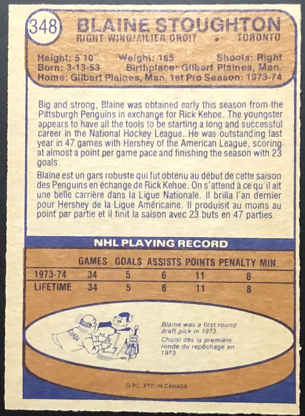 Card #348 OPC, vintage, NHL, hockey. Rookie