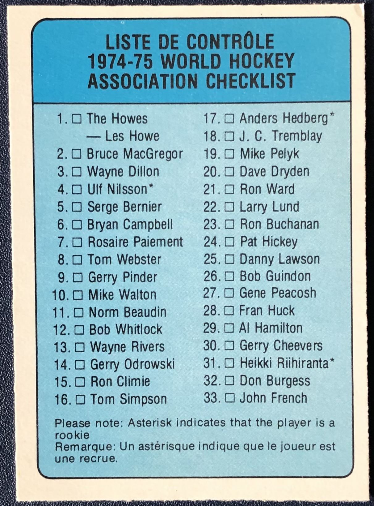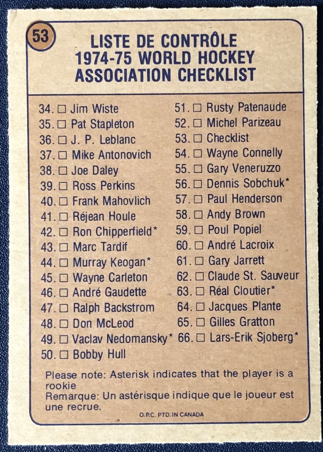 Card #53 vintage, hockey, WHA, OPC