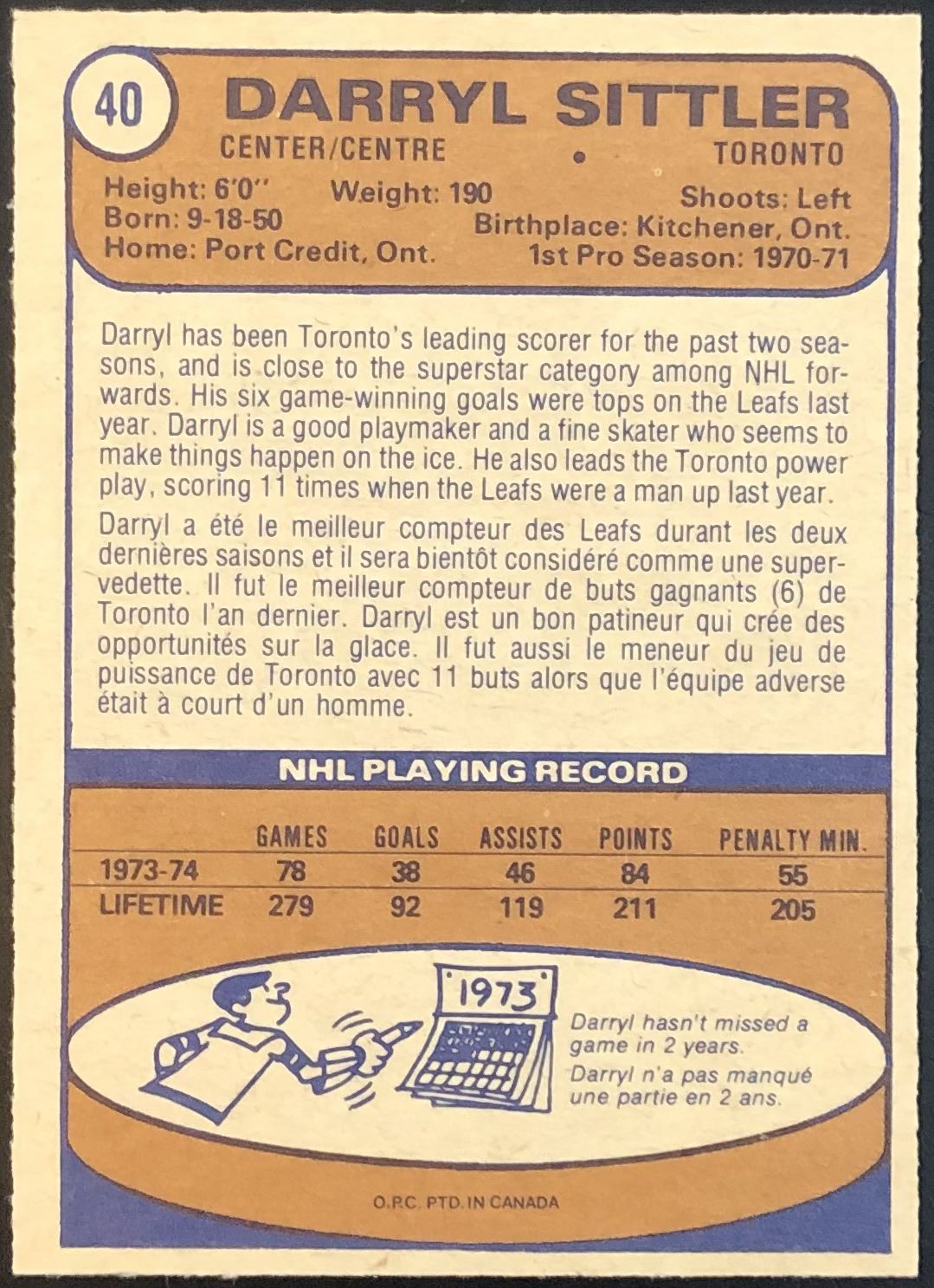 Card #40 NHL, hockey, vintage, OPC, hall of fame