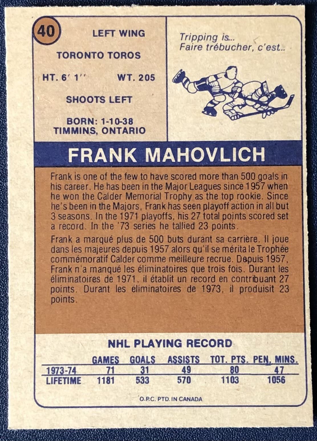 Card #40 vintage, hockey, WHA, OPC, hall of fame