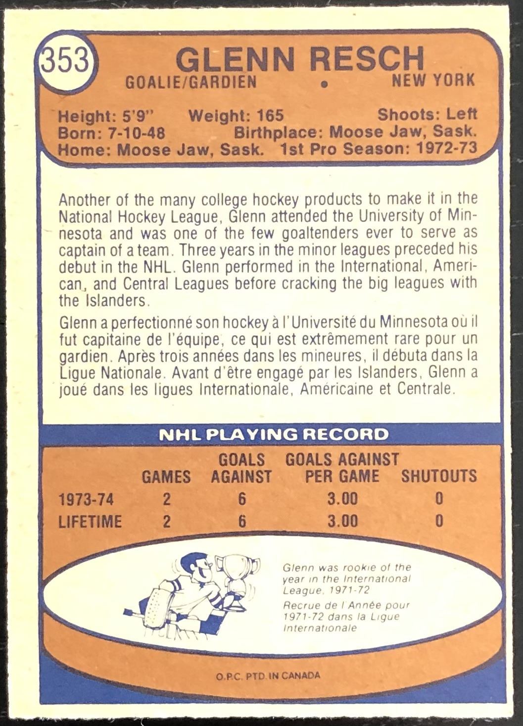 Card #353 NHL, hockey, vintage, OPC, rookie