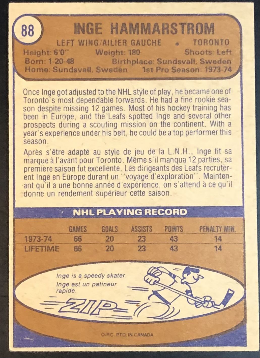 Card #88 NHL, hockey, OPC, vintage, rookie