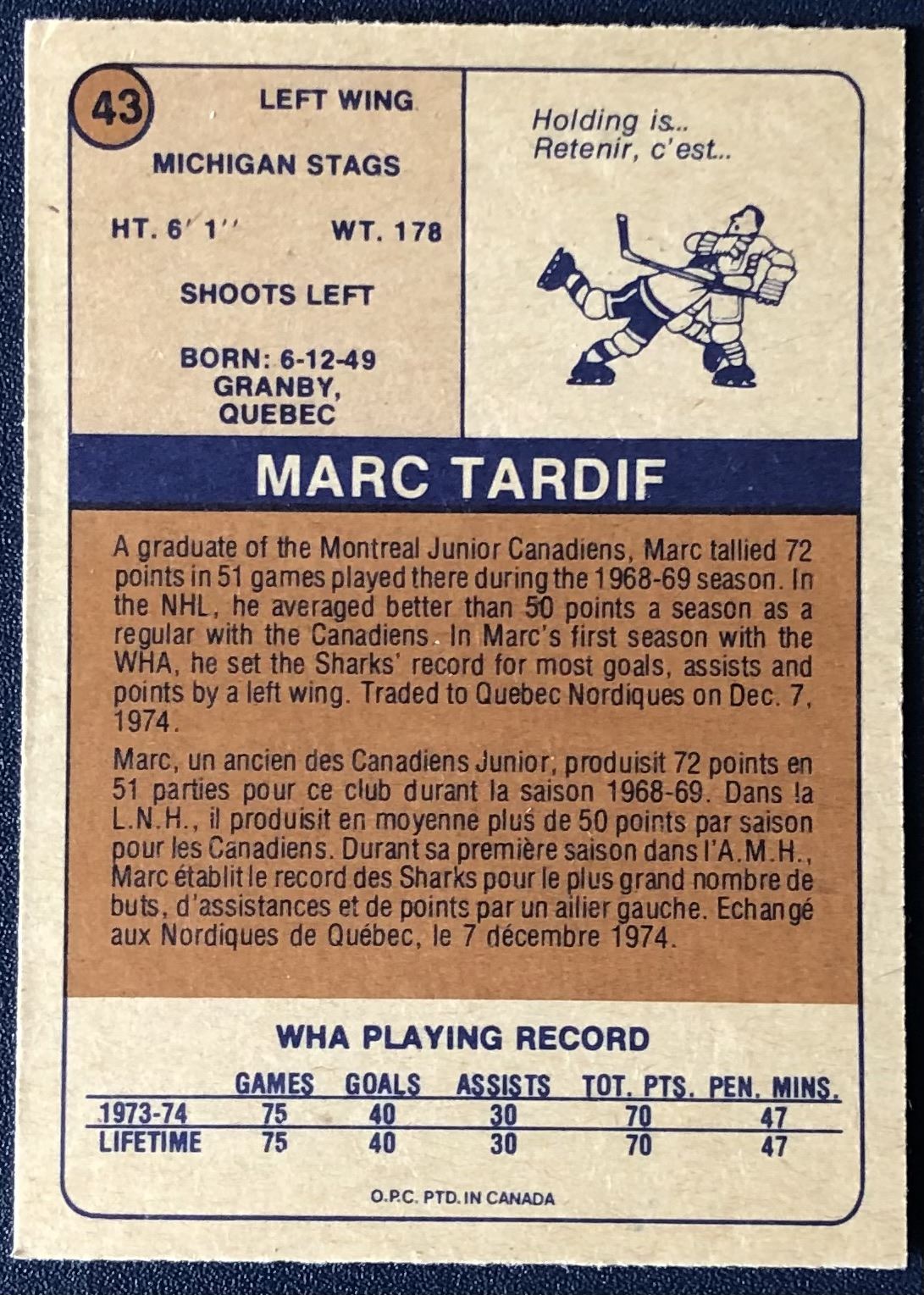 Card #43 vintage, hockey, WHA, OPC