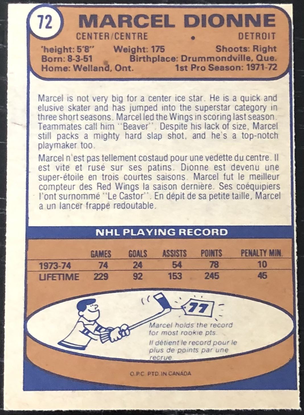 Card #72 NHL, hockey, vintage, hall of fame