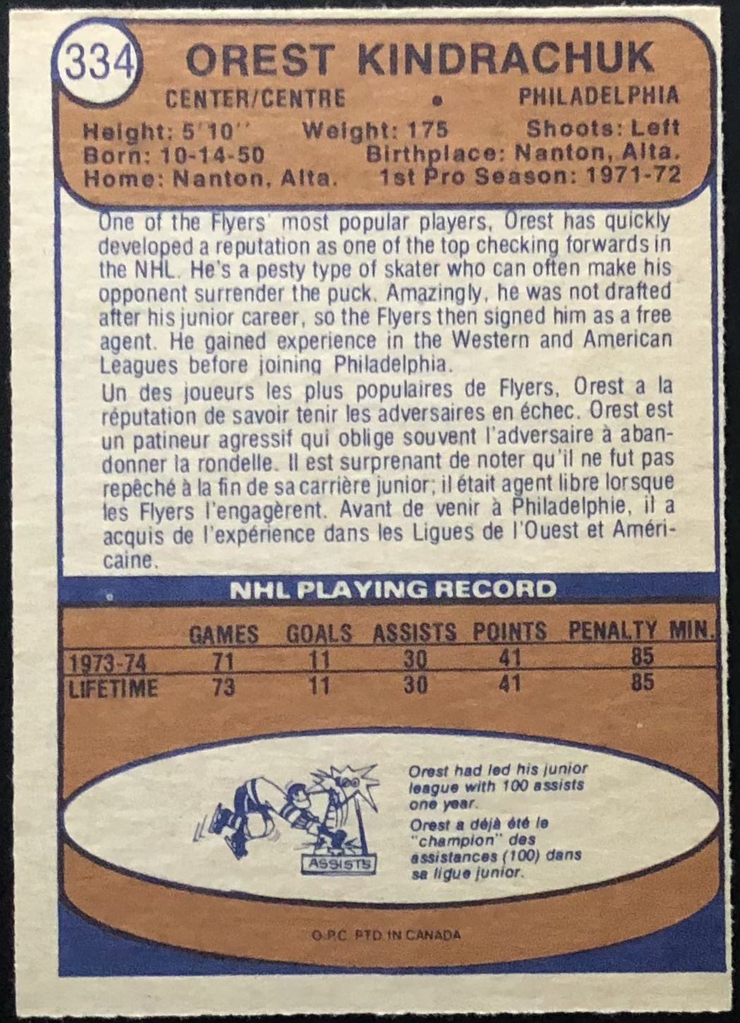 Card #334 NHL, hockey, vintage, OPC, rookie