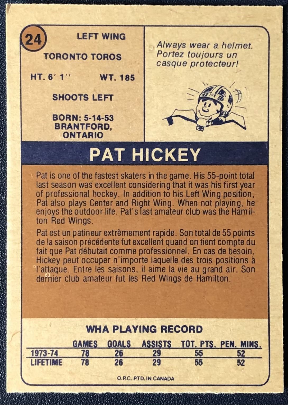 Card #24 vintage, hockey, WHA, OPC, rookie