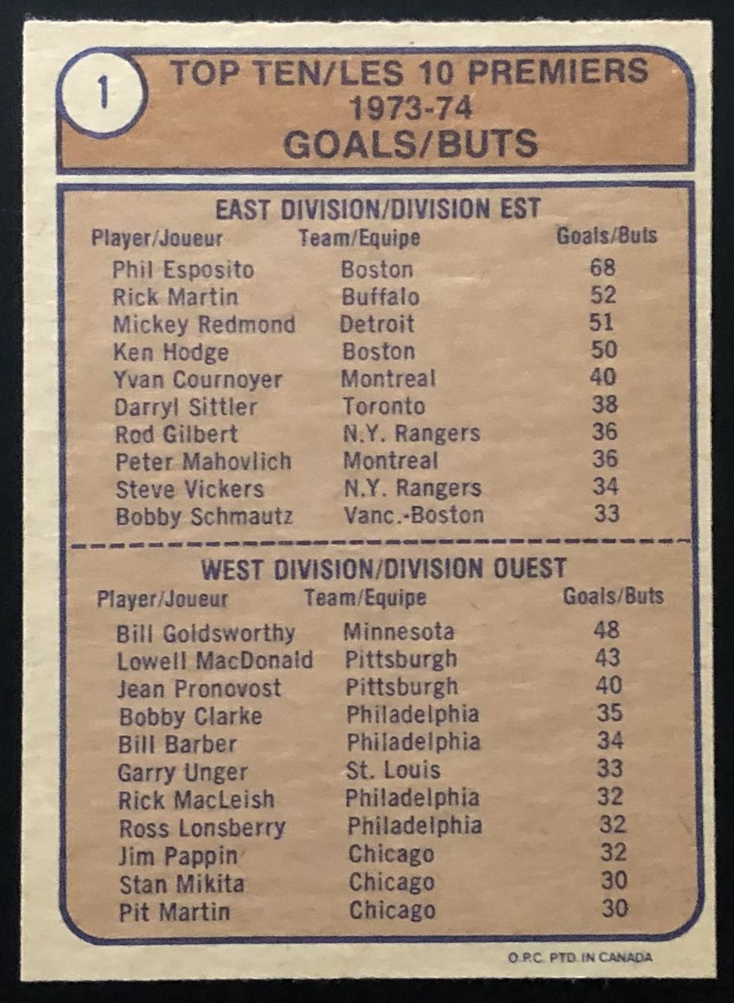 Card #1 NHL, hockey, vintage, OPC, hall of fame