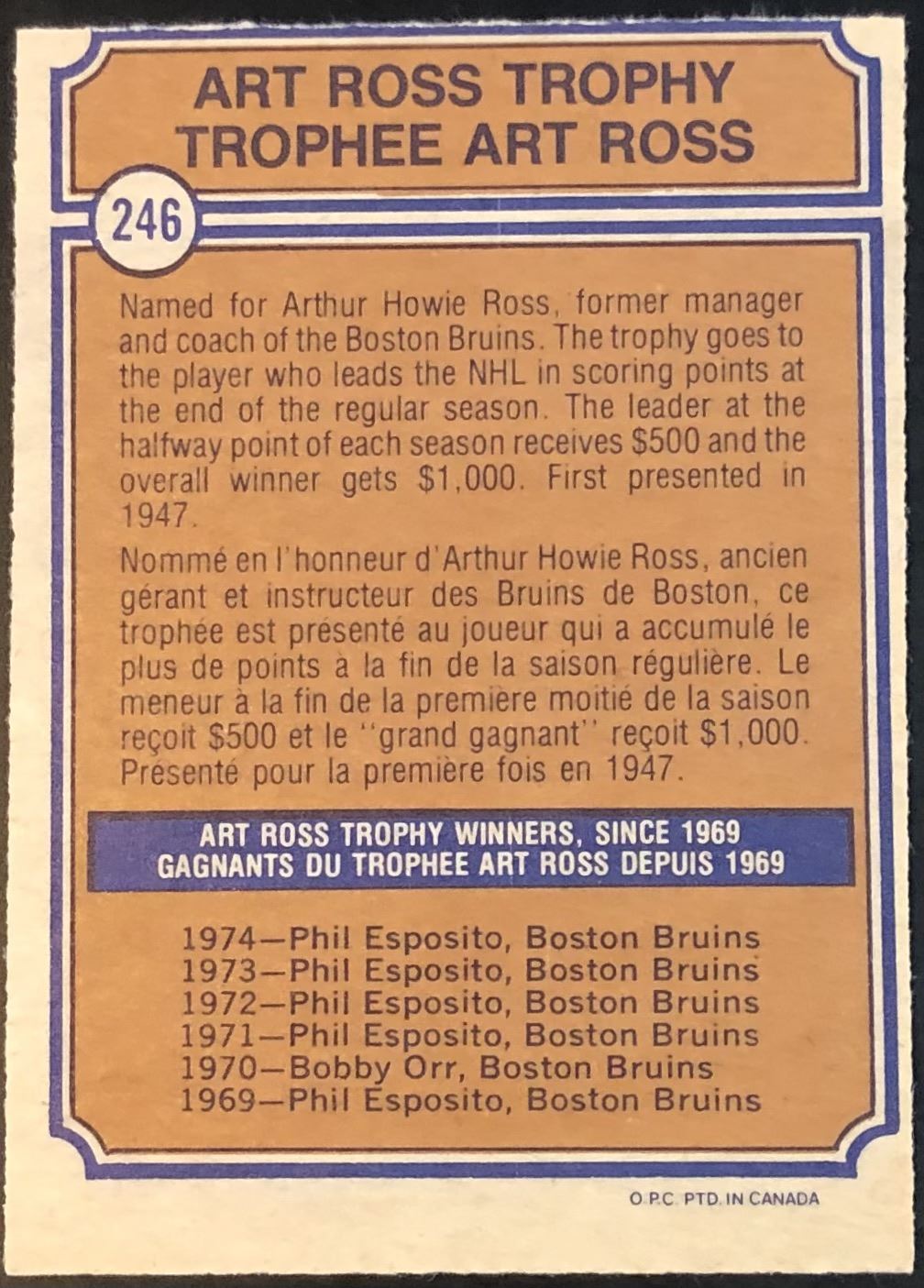 Card #246 NHL, hockey, vintage, OPC, hall of fame