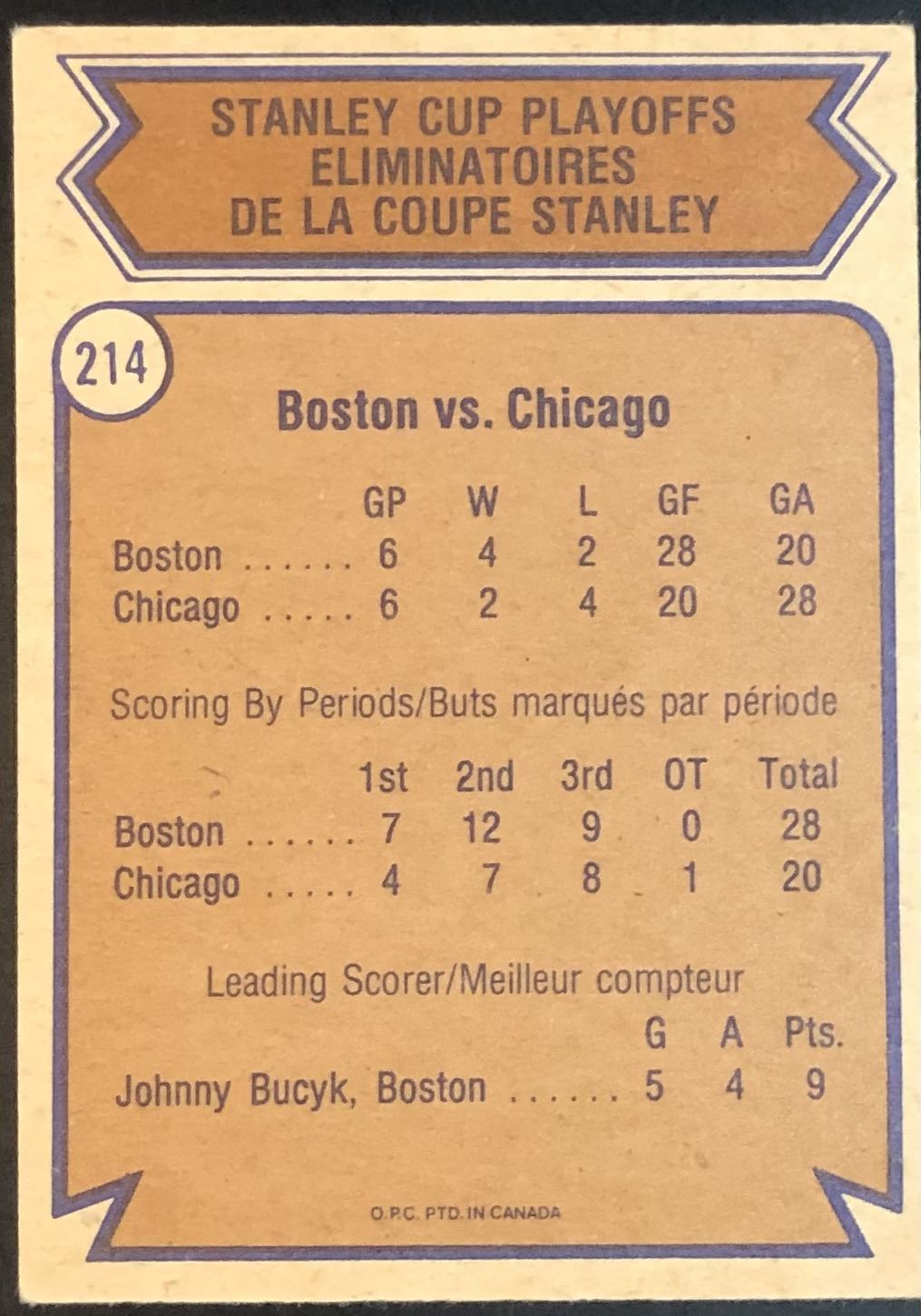 Card #214 hockey, OPC, vintage, hall of fame