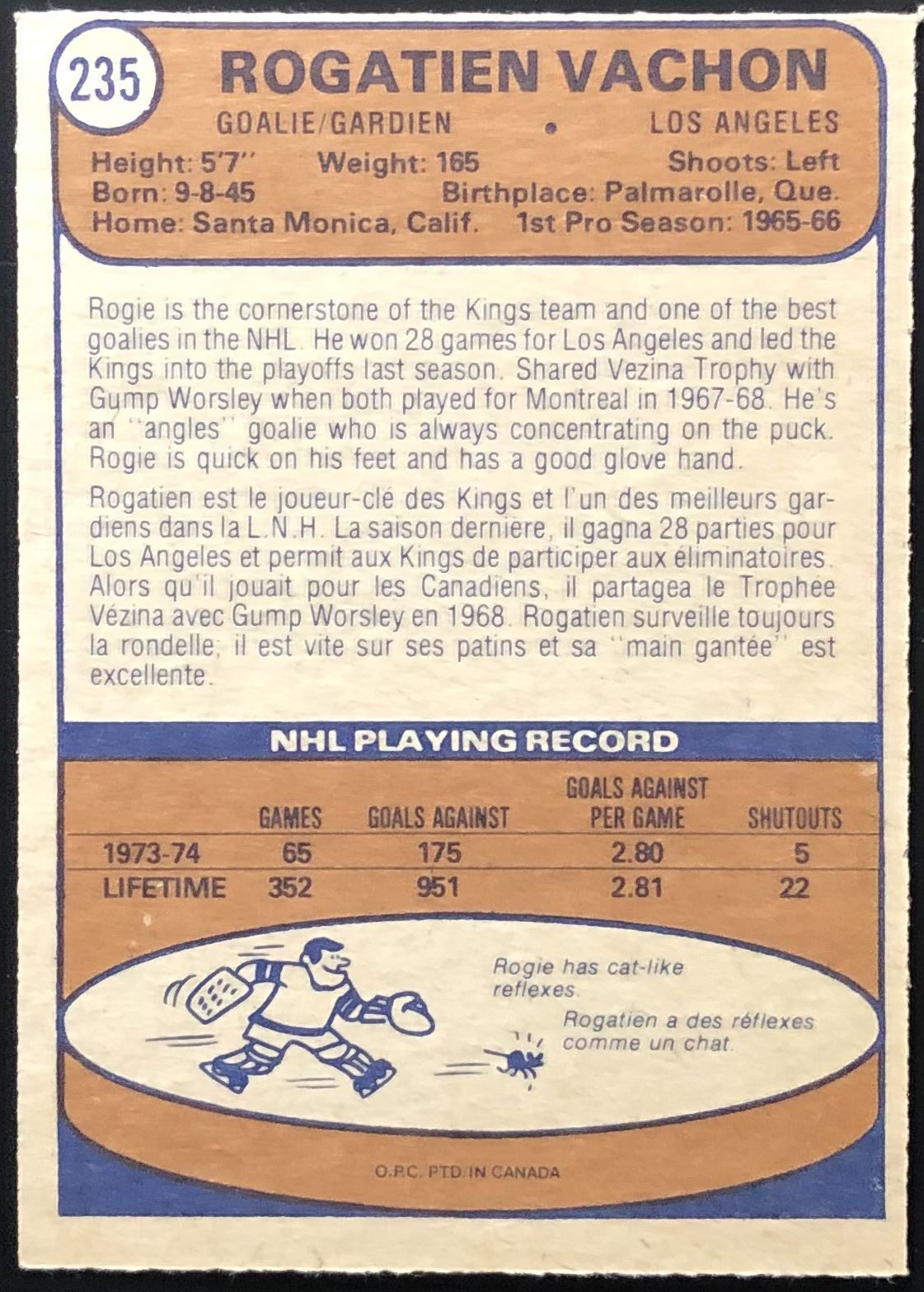 Card #235 NHL, hockey, vintage, OPC, hall of fame