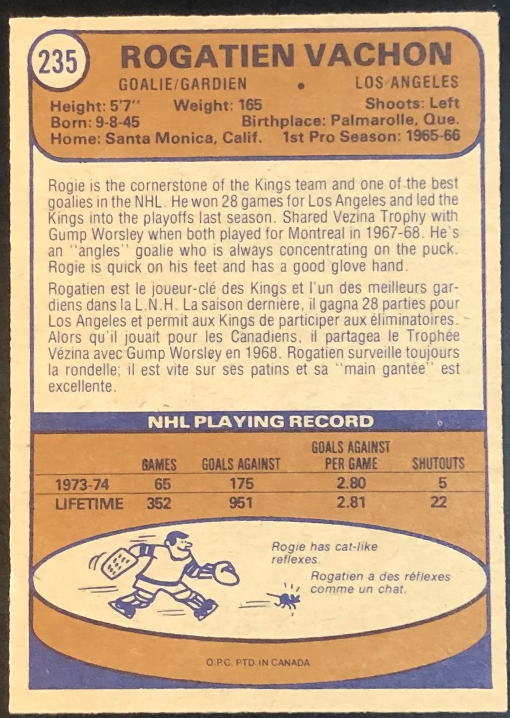 Card #235 NHL, hockey, OPC, vintage, hall of fame
