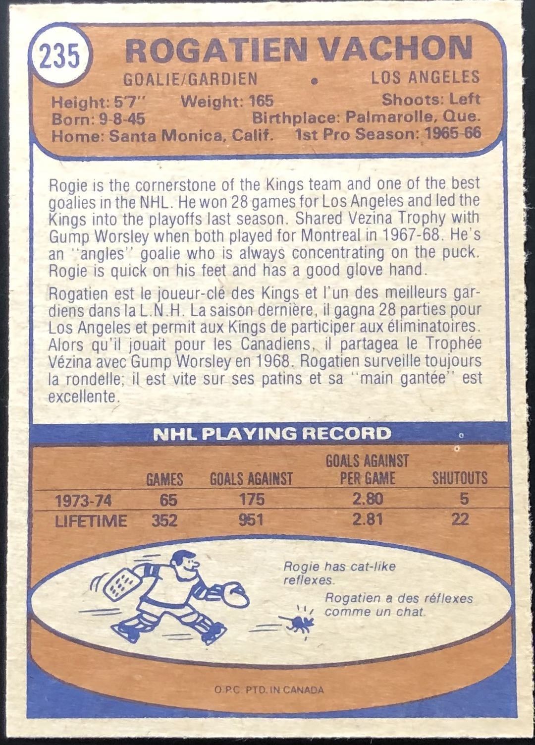 Card #235 NHL, hockey, OPC, vintage, hall of fame