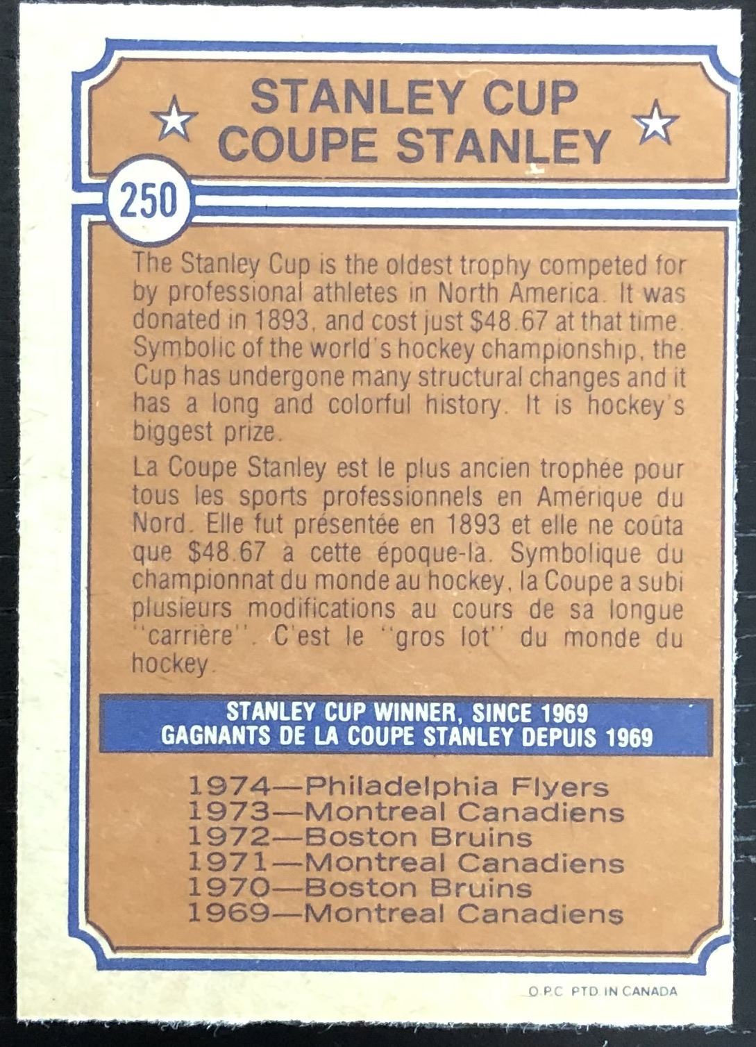 Card #250 NHL, hockey, vintage, OPC