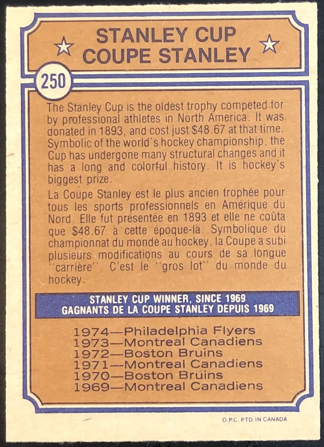 Card #250                                                 NHL, hockey, vintage, OPC