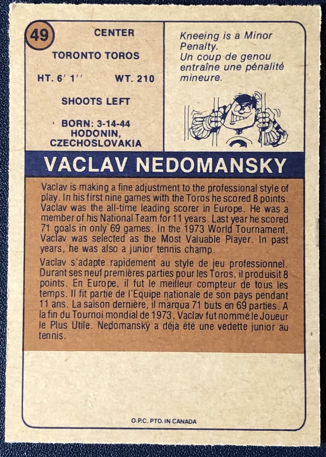 Card #49 vintage, hockey, WHA, OPC, rookie