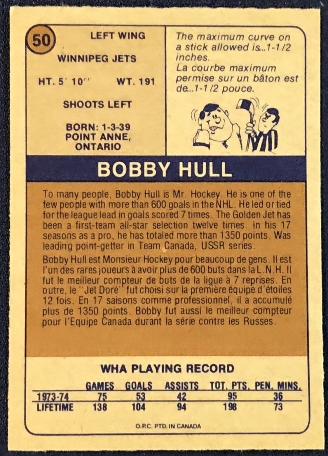 Card #50 WHA, hockey, vintage, OPC, hall of fame
