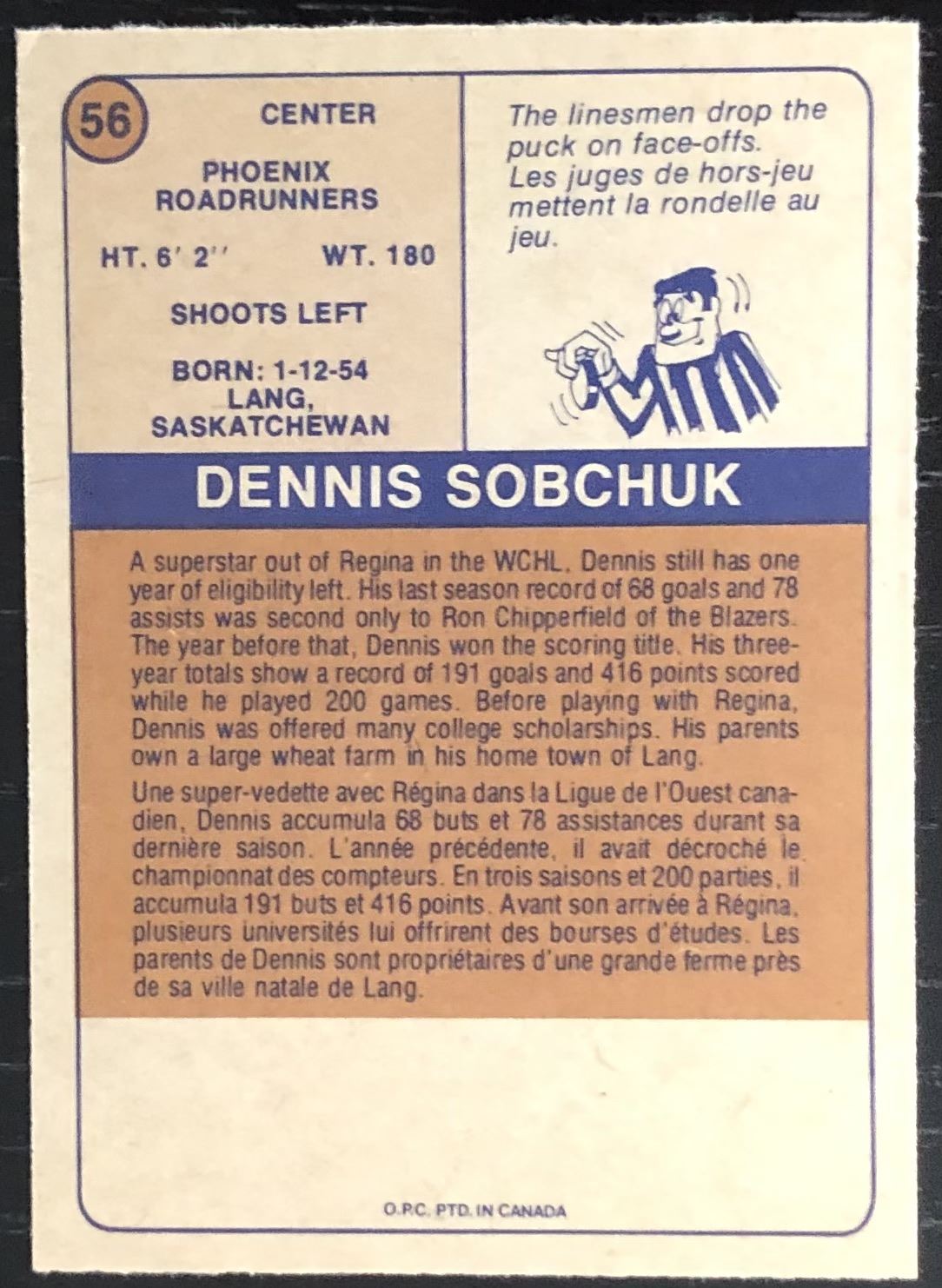 Card #56 WHA, hockey, vintage, OPC, rookie