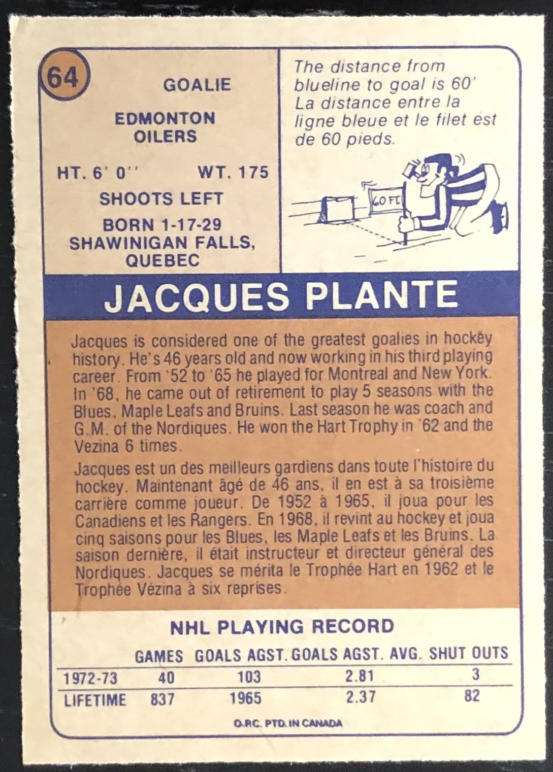 Card #64 WHA, hockey, vintage, OPC, hall of fame