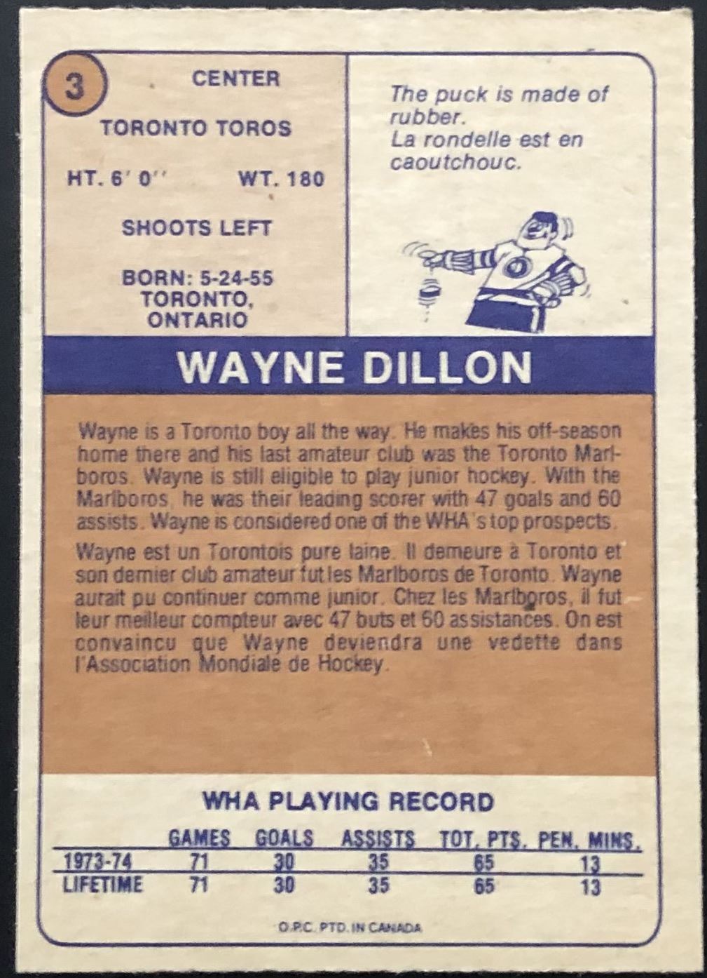 Card #3 WHA, hockey, OPC, vintage, rookie