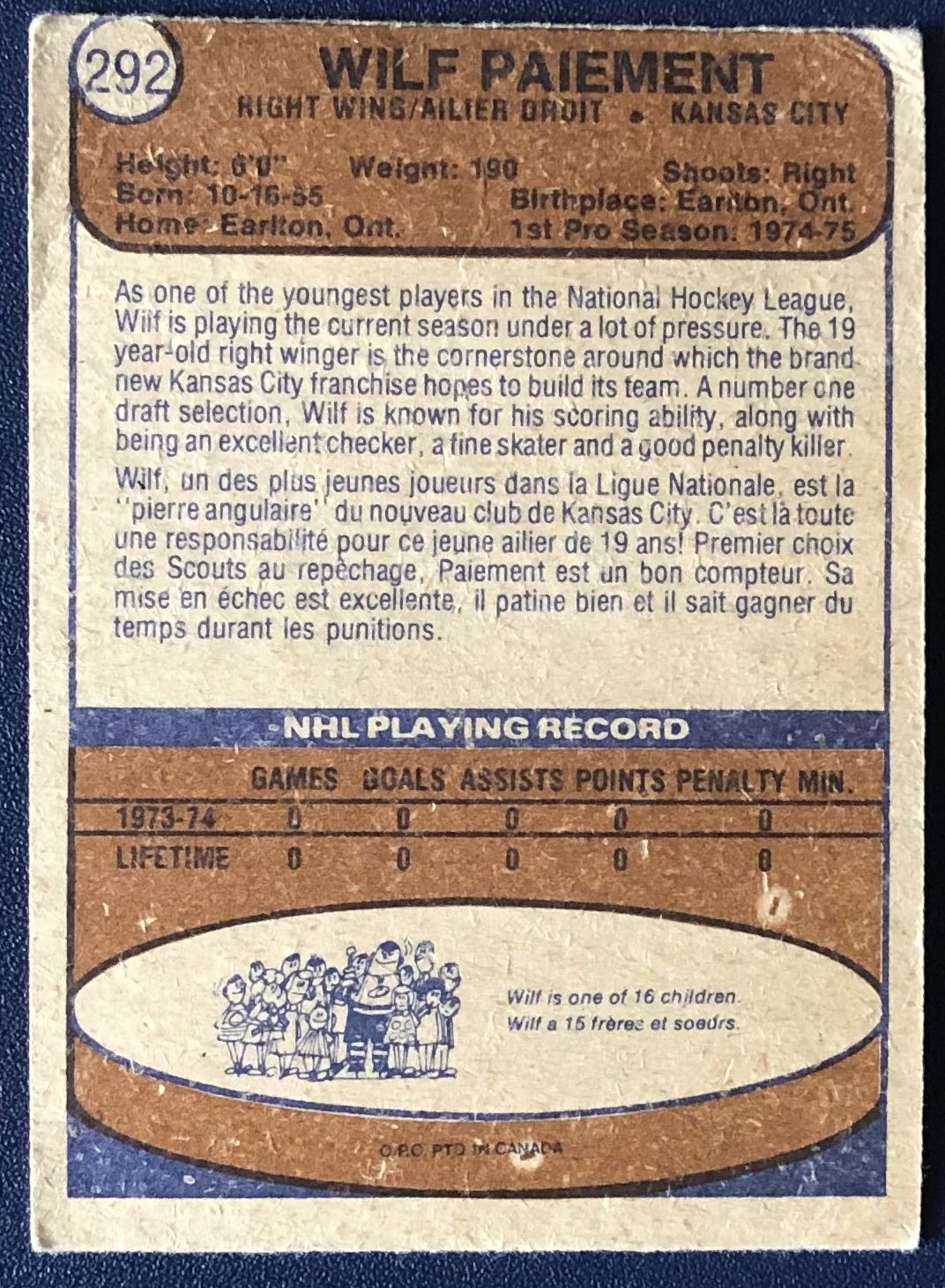 Card #292 small crease on front, back has rough surface NHL, OPC, rookie, vintage