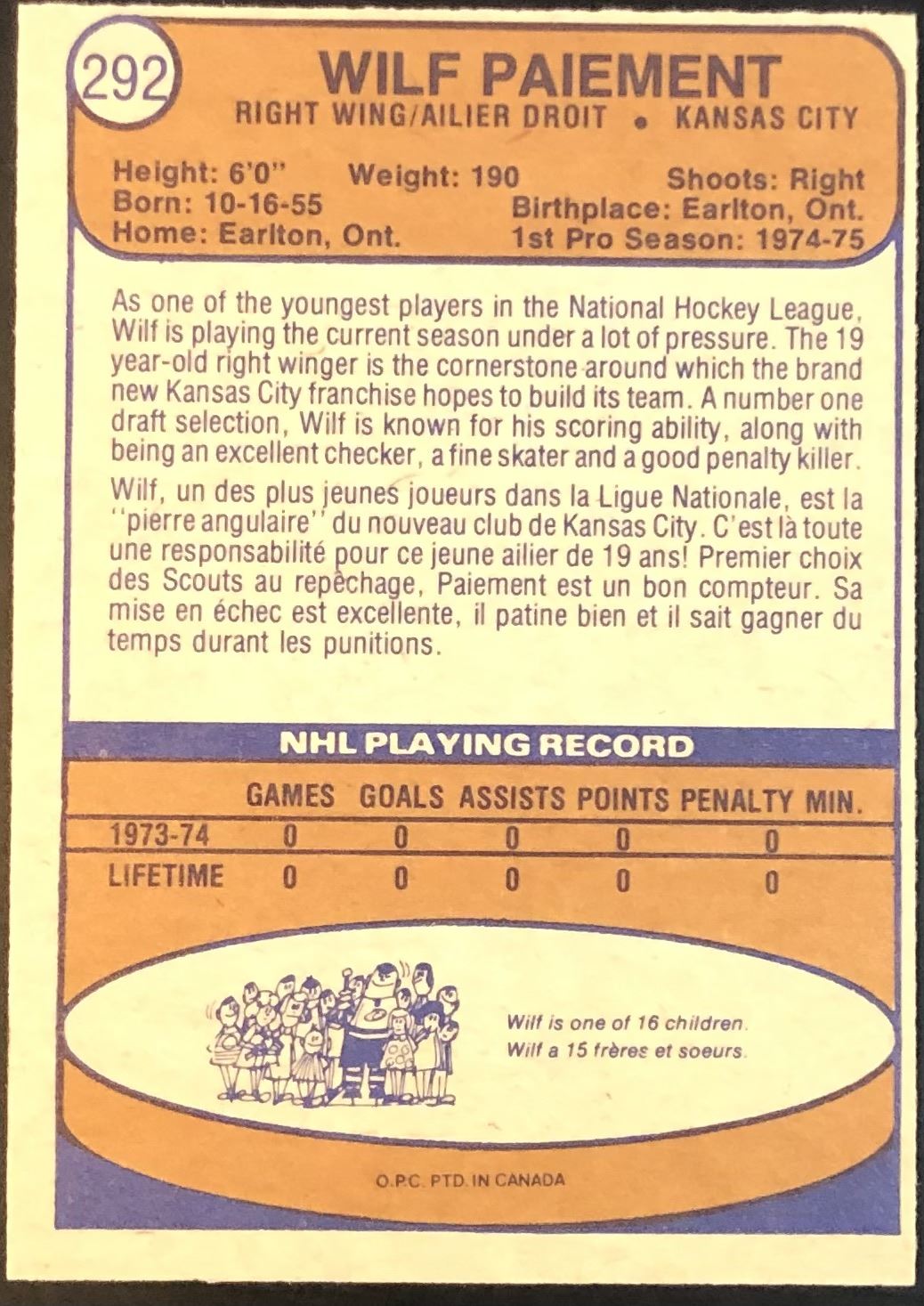 Card #292 NHL, hockey, vintage, OPC, rookie