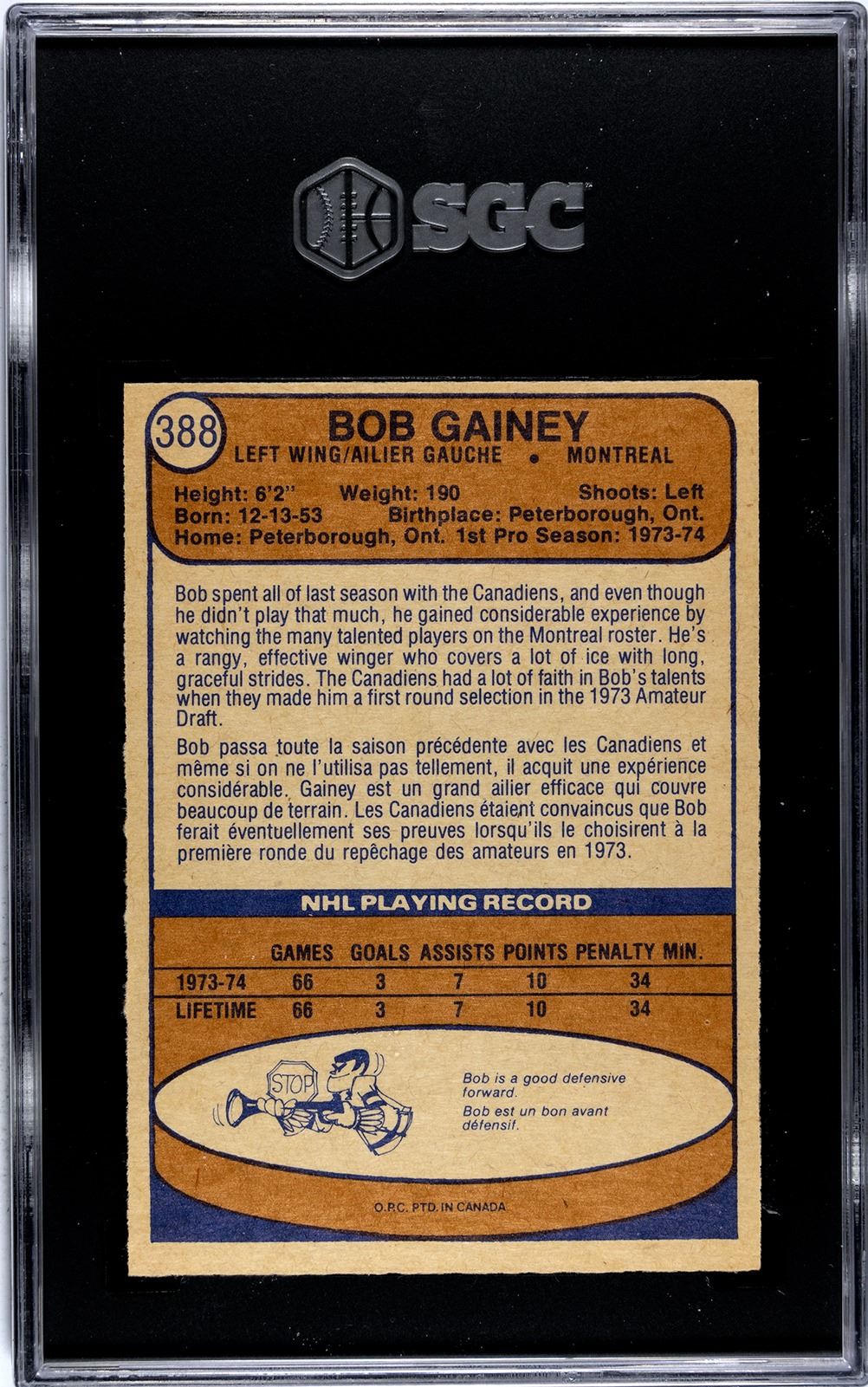 Rookie card of one of the best all around forwards to ever play the game. Gainey did it all, to the point the Soviet Red Army coach Viktor Tikhonov called him the best player in the world in the 1970s. He spent 16 seasons with the Montreal Canadiens where he played the best two-way game in the NHL. He was physical, but never resorted to gooning it up as prolific as it had become on the 1970s. He won four straight Selke Awards (and a runner-up finish in year five), won five Stanley Cups and won a playoff MVP (Conn Smythe Trophy) in 1979. This is 1 of 1 in this grade, with only 3 graded higher by SGC. A sharp example of his rookie card, graded 8 NM-MY by SGC!