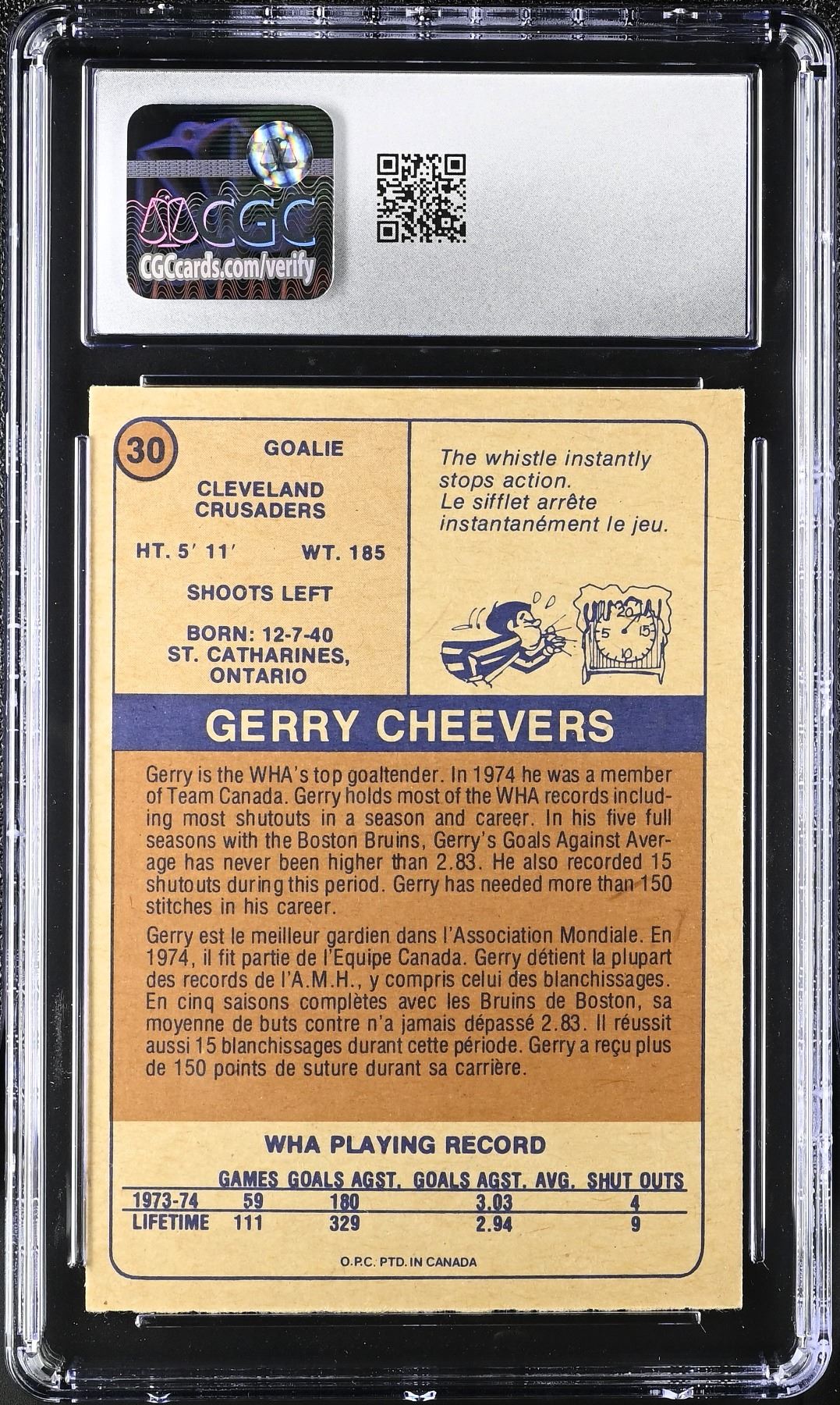 HOF goaltender jumped to the WHA at the age of 31 for a considerable raise over what the Boston Bruins were paying him. He was coming off of his second Stanley Cup in three years and took advantage of the demand for his services. Graded 5 EX by CGC!