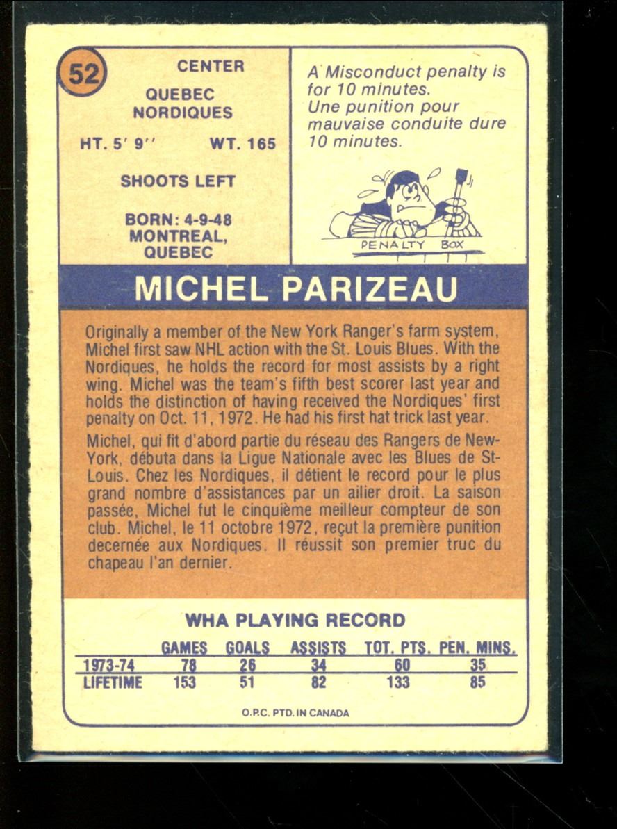1974-75 O-Pee-Chee WHA #52 Michel Parizeau