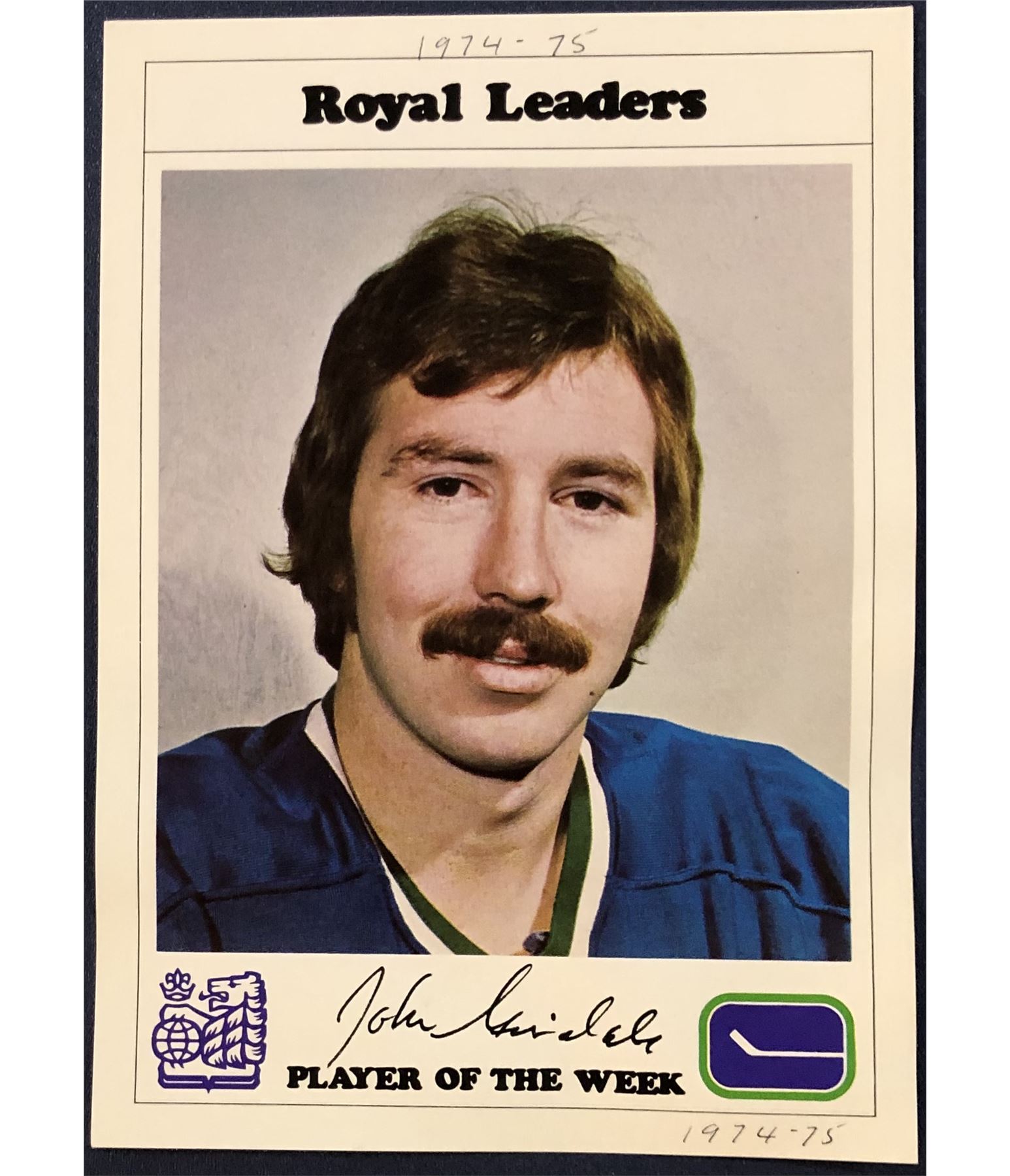 1974-75 RBC VANCOUVER CANUCKS - JOHN GRISDALE