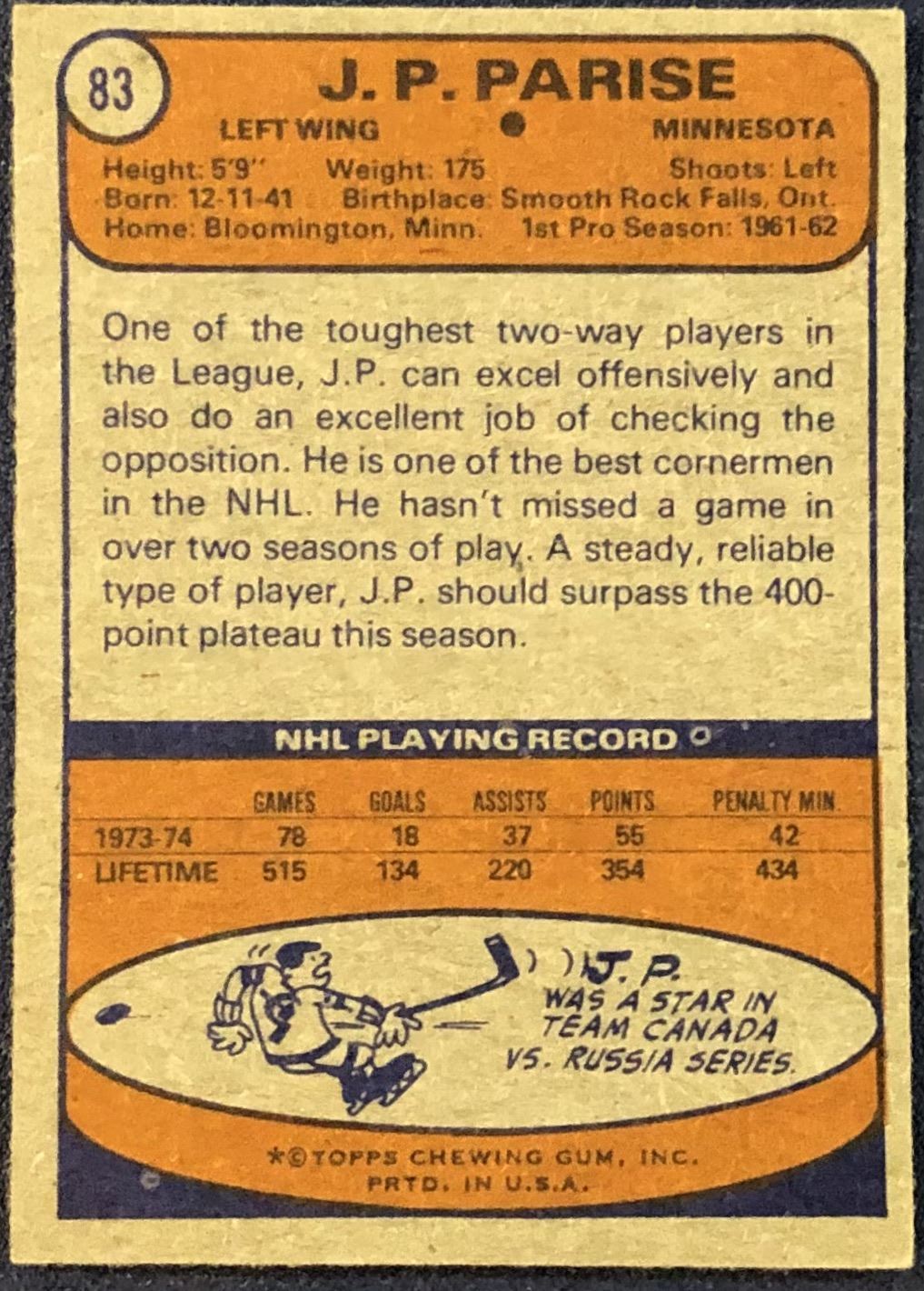 Card #83 NHL, hockey, vintage