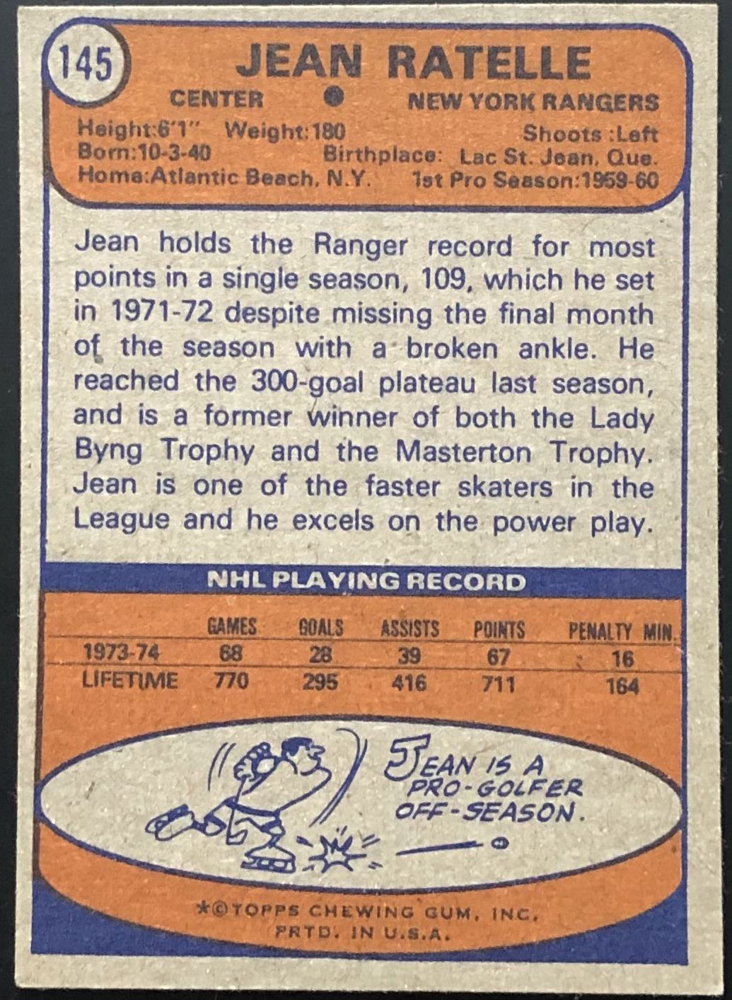 Card #145 NHL, hockey, vintage, hall of fame