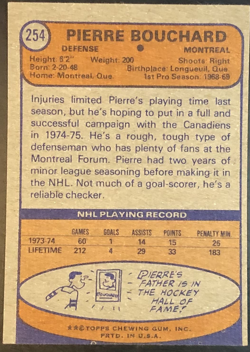 Card #254 NHL, hockey, vintage